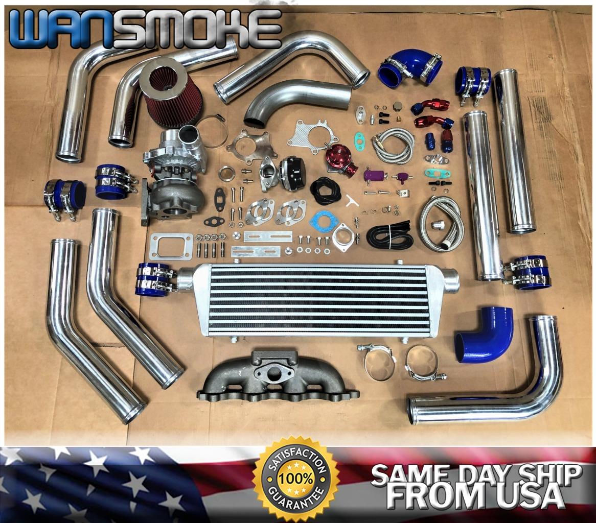 ~~~WANSMOKE~~~ Fast Shipping, 100% Customer Satisfaction ! WANSMOKE has the best products with the best prices. We believe in Safety and Standards in both machining and manufacturing. Unlike our competitors who offer you low prices for inferior products, we build products that lift and level your vehicle without compromise. Cutting corners is awesome when driving your car but not when manufacturing, buy right, choose Supreme. 1997-1999 Acura CL 1994-2002 Honda Accord 1995-1998 Honda Odyssey 1996-1999 Isuzu Oasis Minivan Fits vehicles running with Honda F22B1 VTEC, F22B2, F22B6, F23A1, F23A4, F23A7 4 Cylinder or engine swap. Includes - T3/T4 Turbocharger Includes - Turbo Manifold Includes - Front Mount Intercooler Includes - Intercooler Mounting Kit Includes - Piping Kit Includes - Silicone Coupler Includes - T-Bolt Clamp Includes - Air Intake Filter Includes - Blow off Valve Includes - BOV adapter Flange Includes - External Wastegate Includes - Steel Downpipe Tube Includes - Manual Boost Controller Includes - Oil Feed Line Includes - Oil Restrictor Adapter Includes - Oil Return Drain Line Includes - Oil Pan Drain Plug Adapter Includes - T3 4 Bolt Gasket Includes - T3 5 Bolt Flange + Gasket T3/T4 TURBOCHARGER 100% Brand New T3/T4 Hybrid Turbocharger! High Quality Guaranteed! cast housing with durable steel. Capable of boosting horse power up To 350+ BHP, standard 4 bolt exhaust flange, Capable of 8 PSI or 15-25 PSI output at peak power. CNC machined flanges. Internal wastegate setting: 8 PSI. High quality t04e with a forged turbine propeller wheel! Turbo Specification: - Standard 5 bolt T3 Downpipe Flange. - 5 Bolt Standard Hot Side. - Standard T3/T4 Flange. - Oil Inlet - 1/8 NPT Oil Inlet. - Bearing Type - Journal Bearing. - Wet Floating Bearings. - Cooling Type: Oil Cooled. Compressor Specs: - 3" Compressor Inlet. - 2.07" Inducer. - 2.36" Major. - 2" Compressor Outlet . - T04B/T4 Type Compressor Housing. - Compressor .50 A.R. - Compressor .57 Trim. - 8 Blade Type T4 Compressor Wheel. Turbine Size: - T3 Type 4 Bolt Turbine flange. - 5 bolt Exhaust flange. - Turbine .63 A.R. - 2.48" Minor and 2.89" Major Propellar. - T3 Turbine Housing. - 2.274" Outlet TURBO MANIFOLD 1. Standard T3/ T4 (T03/ T04) Turbo Flange Configuration Outlet. 2. Included Wastegate Flange for 35mm/38mm external WG. 3. Increase Engine Intercooler Output and Efficiency. 4. Made of High Quality Cast Iron Material for Strength and Durability. INTERCOOLER: 1. 6061 Light Weight Billet Aluminum Construction. 2. Tube & Fin Light Weight Design. 3. Construction: Machine Cut and Stamped Hand Welded. 4. Working Pressure: 5~50PSI. 5. Pressure Drop:2~5psi@35psi;0.2~0.5psi@15psi. 6. Hot Air Temperature: 32°F~302°F (0°C~150°C) 7. Compress Air Flow Rate: < 350 Cubic Feet/Min Rated to 500 Max HP. 8. Overall Size - 27" x 7" x 2.5" 9. Core Size - 21" x 6.5" x 2.5" 10. In/Outlet - 2.5" OD / 2.25" ID PIPING: 1. Made of High quality T-6061 LIGHTWEIGHT Aluminum Piping. 2. Powder-Coated Surface Finish. 3. 2.5" Piping Diameter. 4. 2.0mm Pipe Thickness. 5. Increase 65% Air Flow comparing with other Standard Piping. SILICONE COUPLER: 1. Made of high quality silicone material 2. Thickness of wall:5 mm, 4 ply reinforced 3. Working Pressure: 0.3 Mpa (43.5 PSI) to 0.9 Mpa (130.5 PSI) 4. Bursting Pressure: 2 Mpa 5. Working Temperature: -76°F (-60°C ) to +500°F (+260°C) 6. Size tolerance:+/-0.5 mm T-BOLT CLAMP: 1. Made of High quality 301 SS Stainless Steel Clamp 2. Stainless steel construction resists corrosion 3. Provide uniform sealing pressure for a positive 4. Polished finish increases engine bay aesthetics AIR FILTER: 1. Oil-free filter Micro cotton gauze type filter material washable with water or soap and reusable. 2. Improves Up to 95% Filtration Efficiency. 3. Designed to increase horsepower and acceleration. 4. Width: 6" Inlet: 3.0" Overall Tall: 3.5" Mesh Tall: 2.5" BLOW OFF VALVE: 1. Aggressive JDM racing discharge sound. 2. 8 Discharge ports that draw in surrounding air and release a unique discharge sound. 3. 40mm hard-anodized valve for increased airflow. 4. Dual spring system promoted response and allows for high boost pressures. 5. Support up to 30 PSI boost pressure. OIL LINE: 1. OIL DRAIN FEED LINE. 2. 10AN Fittings. 3. Inner Diameter: 0.50" 4. Length: 17.00" 5. CNC Machined Turbo Adapter Plate. 6. Weldable 10AN Oil Pan Fitting Included. 7. Inner Diameter: 0.25" 8. Length: 36.00" 9. 1/8 NPT Fittings Natural Polish Finish. 10. CNC Machined Turbo Adapter Plate. 11. Brass Fitting Block Fitting and Port Cover Included BOOST CONTROLLER: 1. Allows to adjust PSI ratings without changing the wastegate springs as well as replacing the wastegate springs. 2. High Performance Manual Boost Control From 0~30 psi Capacity. 3. CNC Machined Light Weight and Resistant to Rust. 4. Hose clamp and all necessary hardware for complete installation. 5. 1-30 PSI Adjustable. WASTEGATE: 1. High strength Alloy aluminum body with steel head. 2. Comes with 7 psi spring installed. 3. Protect the turbo system from over boosting. 4. Complete install kit included . GASKET FLANGE ADAPTER: 1. High Quality Cast Raw Steel 2. 4 & 5 bolt for T3 Turbo 3. Single Entry T3 Turbo Flange 4. 12mm(almost 1/2") Thick 5. Bolt Diameter: M10 Thru Holes 6. Holes, Holes Are Drilled Through, Not Threaded. 7. Fits all T3 and T3/T4 hybrid turbos with 4 & 5 bolt standard size inlet EXHAUST DOWNPIPE TUBE: 2.5" t3/t4 steel TIG welded downpipe. Fits all of our turbo kits that feature a turbocharger with a 5-bolt exhaust housing. This provides a simple starter solution for connecting your turbo's exhaust to your existing exhaust system. The pictured metal composite Flange is included! ATTENTION: 1. For emissions related items please check with your local jurisdiction for emission specific requirements before purchasing. NO installation instruction included unless otherwise specified. If item is questionable please consult your local professional/mechanic before making purchase. 2. Col
