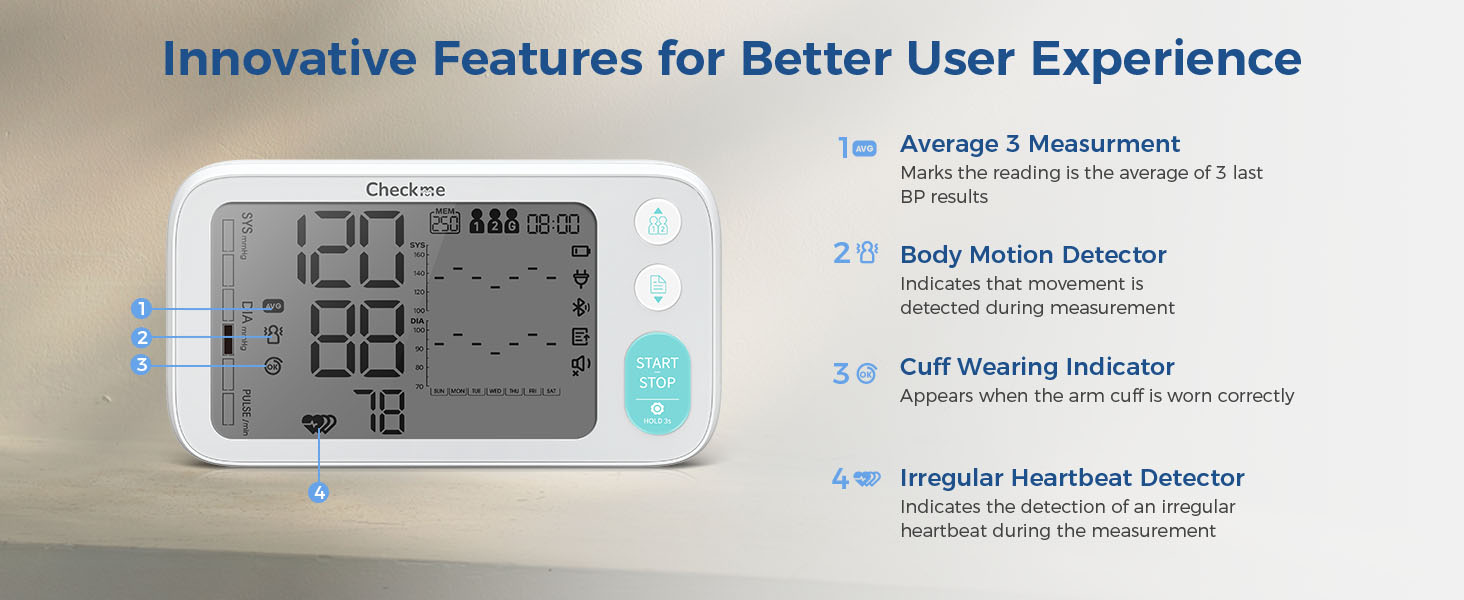 SUPER POWERFUL PERSONAL BLOOD PRESSURE MONITOR: Provide you with very valuable information for a complete view of your blood pressure, including Systolic(SYS) and Diastolic(DIA) blood pressure, Mean Arterial Pressure(MAP), plus rate and pulse pressure. FDA approved.