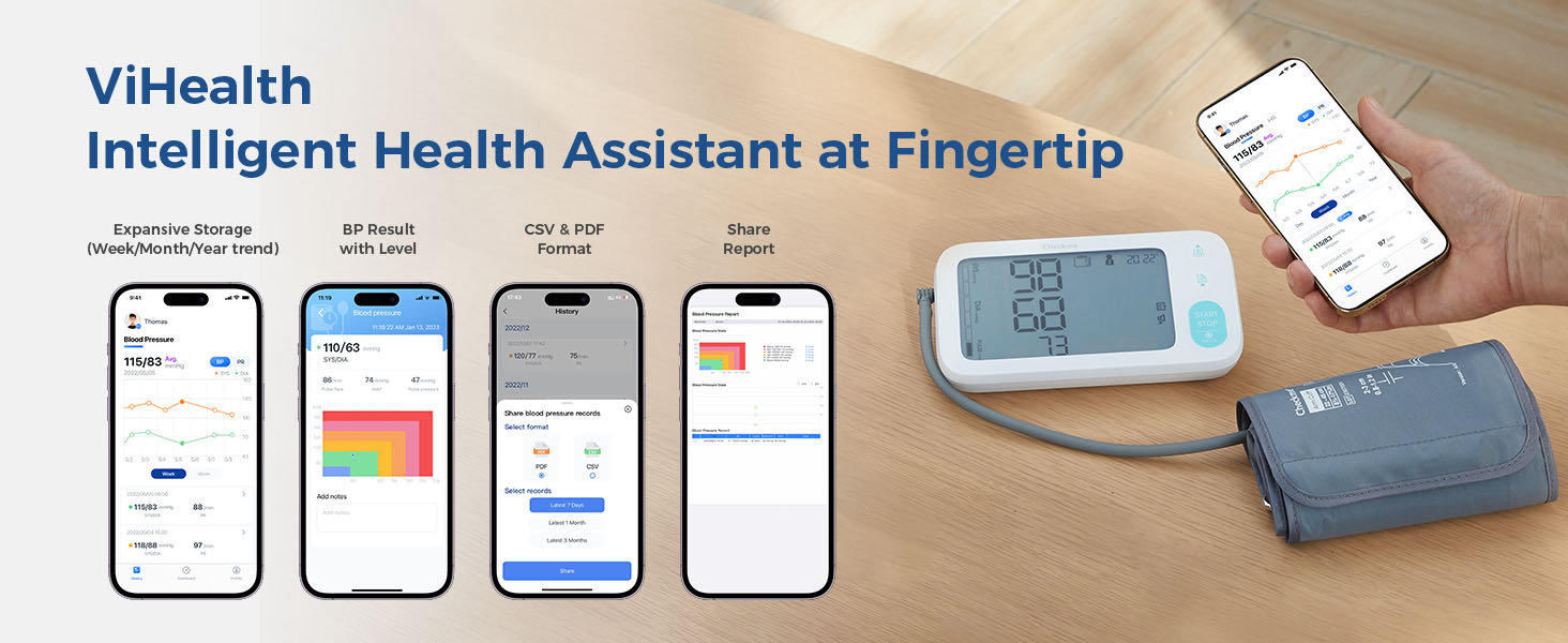 EASY TO USE: Picture and sound guidance in App helps you operate correctly. Easily View & understand your blood pressure status on your smartphone.