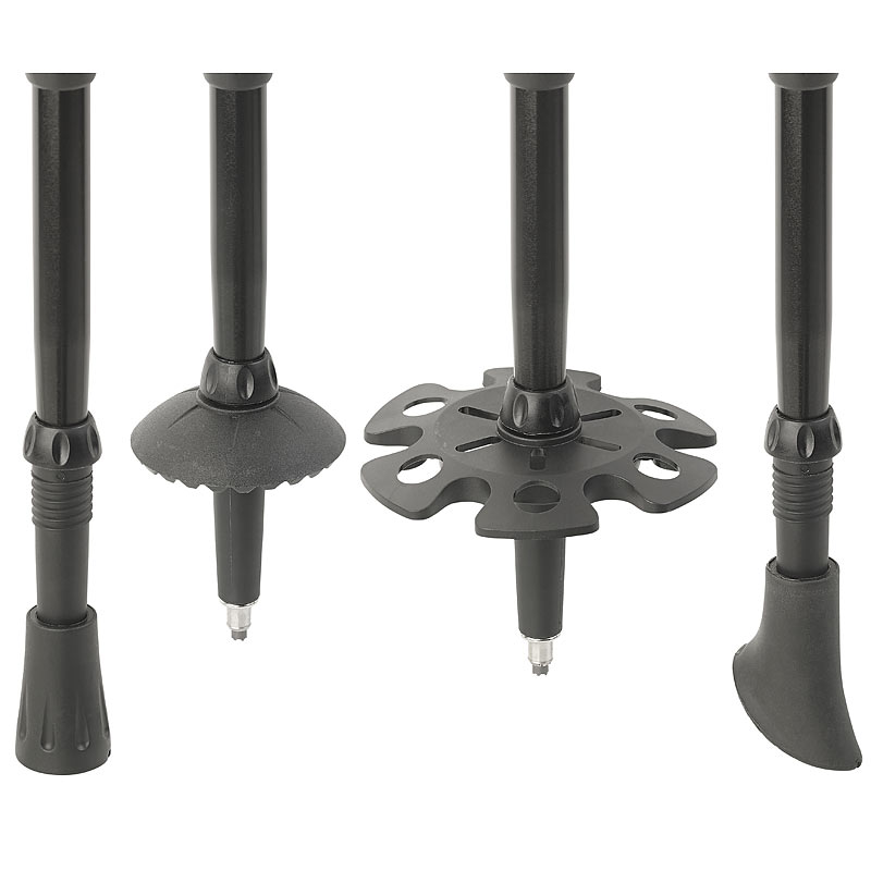 Genießen Sie hohen Geh-Komfort überall: Mit den auswechselbaren Spitzen, Asphalt-Pads, Trekking- und Schneetellern sind Sie für jede Route bestens gerüstet. Sie wandern auf allen Böden und zu jeder Jahreszeit!