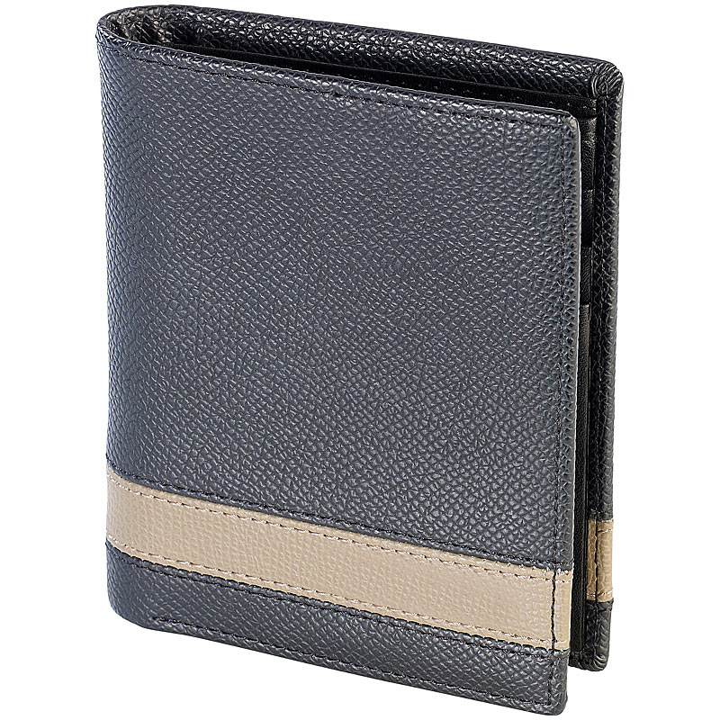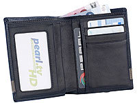 - Portemonnaie aus Echtleder: 9 Fächer (3x Kreditkarten, 2x Geldscheine, 4x Einschübe davon 1x mit Sichtfenster)