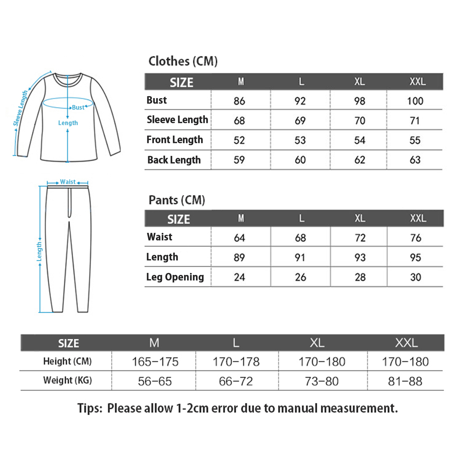2 PIECE SET:The thermal underwear set consists of two parts, top and pants