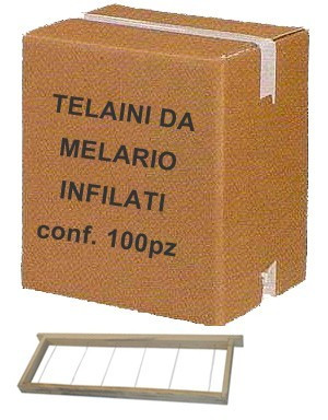100 telaini da melario in legno di tiglio, forati e armati con filo già montato, pronti per la zigrinatura.