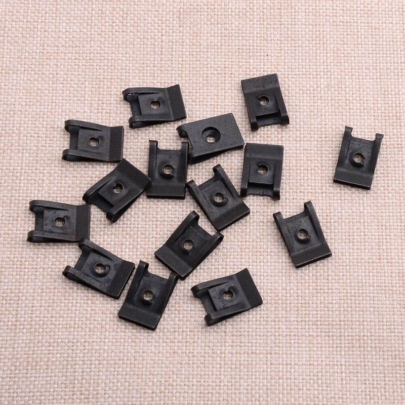 Color: Black Material: Metal Size: As picture shows Item included: 15 x Sets Spring U-type Clips&Screws Suitable: for fitting side skirts,bumpers and other trim