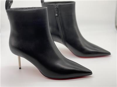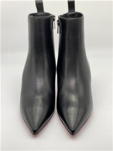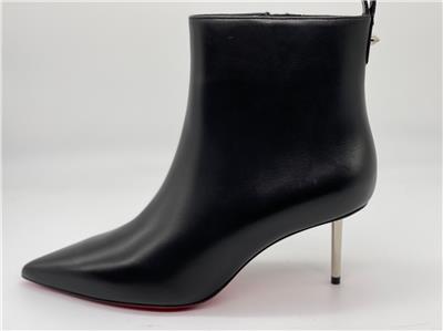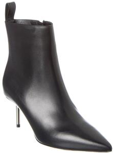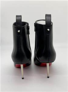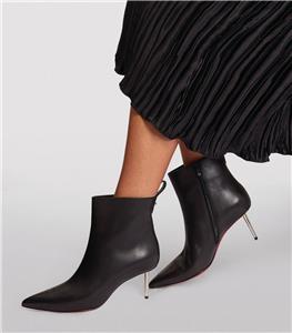 Epic 70 Leather Boot in black leather and silver-tone hardware with pointy-toe and a spiked metal Pik heel. – another one of the Parisian designer’s fascinations – as the mirror-like quality gives the illusion that the wearer is standing on their tiptoes.
