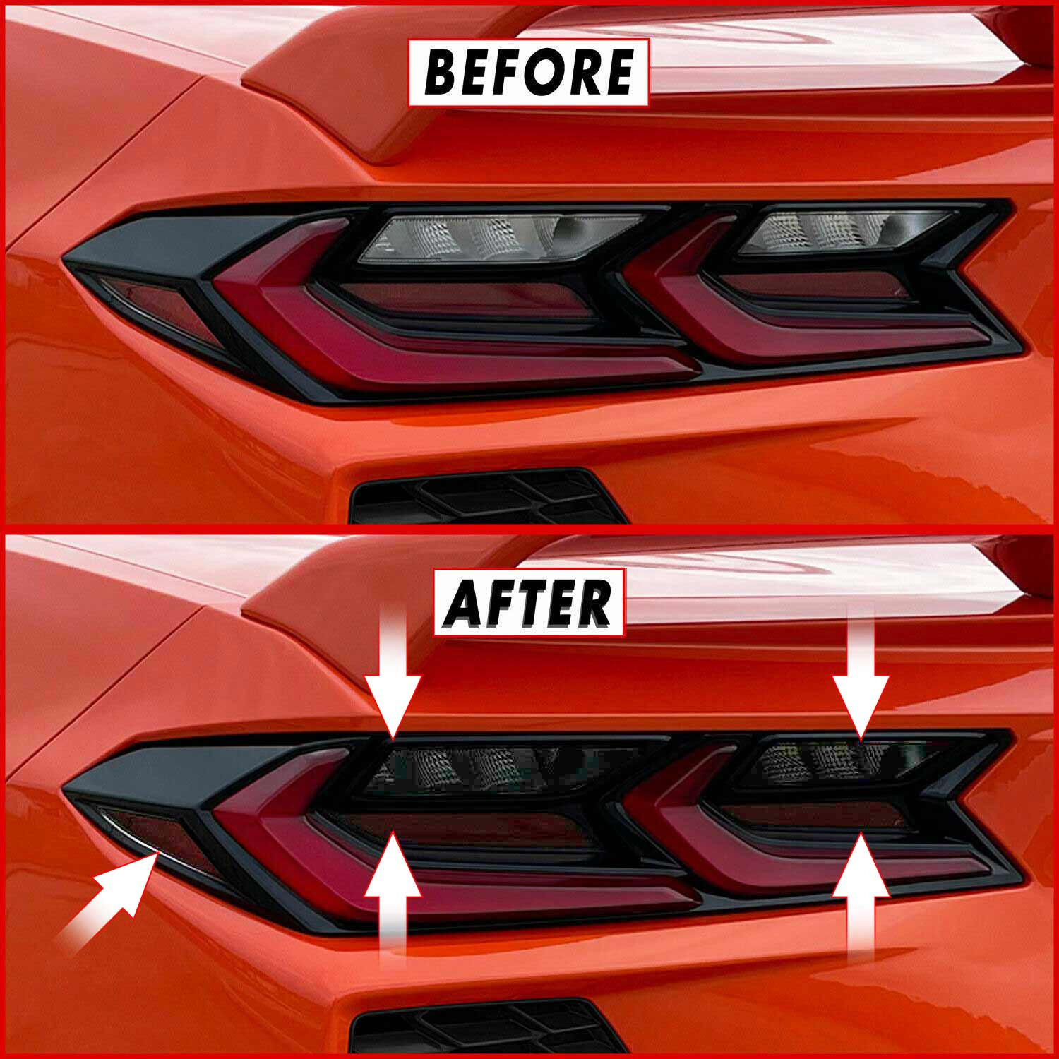 Product: 10 Piece Tail Light Blackout Kit Color: Dark Smoke Material: Vinyl Overlay Fitment: For Corvette C8 Stingray 2020 If you are looking for away to set your car apart from the rest. This for Corvette C8 10 piece Tail Light Blackout Kit is the way to go. Designed specifically for the new redesigned for Corvette C8 2020,2021 models... ( Fits all models coupes and convertibles, Base, Z51 models ) This tail light cover kit will cover the white/clear lens in the tail light cluster, side markers, and lower reflector in tail light assembly. Kit Includes: 10pc kit - Dark Smoke Vinyl Overlay Fits - All 2020 Models The Man says... " When in doubt, Black it Out!" Should you have any questions or not sure this Tail light blackout kit will work with your application drop us a line via Ebay messages. Our Team is always standing by to help you! Please contact us thru Ebay messages should you have any issue with any Parts or Accessories for any reason. We are totally new to Ebay and we will strive to maintain an Above average sellers rating. Should you ever need any other Mods or Graphics keep us in mind. Follow us or make us one of your new favorites... Disclaimer: All vehicle manufacturer names used in our product titles or descriptions including names and models found in images from our listings are property of the designated manufacturer. Examples such as for Chevrolet, for Dodge, for Ford Motor Company, for General Motors, for Jeep, for Nissan Motor Company or any other vehicle manufacturer or affiliate are used for identification and fitment purposes only. does not express or imply any item we offer is an authorized product of the following companies or manufacturers nor affiliated with for Chevrolet, for Dodge, for Ford Motor Company, for General Motors, for Jeep, for Mopar, for Nissan Motors, for Toyota Motor Company or others.
