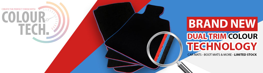 Introducing Colour-Tech, the UKs most advanced Dual Colour Trim Technology, exclusively from Carmats4u. Available in a range of stunning colour combinations, each designed to instantly enhance and transform any vehicle interior. Colour-Tech Dual Binding is manufactured from an ultra-durable colourfast material, which is machine woven using the very latest inter-lock techniques. Each Colour-Tech combination has been carefully designed by carmats4u, creating the perfect blend of contrasting colours. We offer have the UKs widest range of Carpet grades for you to choose from, all available at unbeatable prices, so whatever your budget, we have your floors covered! Remember, the ultimate finish can be achieved with Colour-Tech!