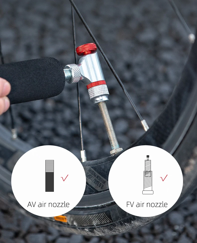 2. Fit both valves Schrader (AV) & Presta (FV)