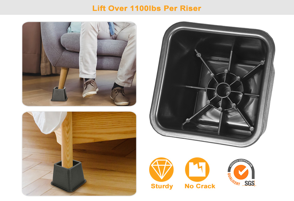 - *MULTI-FUNCTIONAL:Our furniture risers can be widely used for beds,couches,armchairs,desks,sofas,and any furniture you want to rise height.