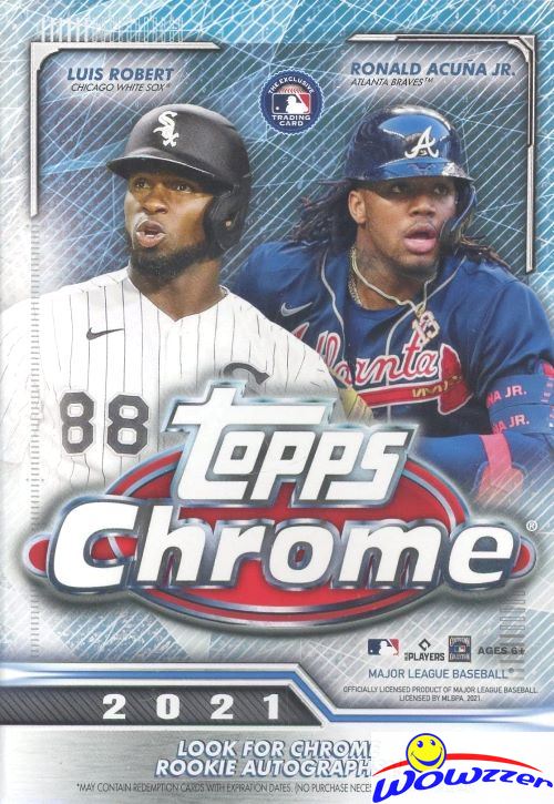 Wowzzer! Brand New & SUPER HOT We are proud to offer this 2021 Topps Chrome MLB Baseball EXCLUSIVE Factory Sealed HANGER Box! This 2021 Topps Chrome Baseball EXCLUSIVE Factory Sealed Hanger Box includes 5 Packs with 4 Cards Per Pack! Look for Rookie Cards, Refractors & Rookie ON-CARD Autographs of this Year?s Amazing Rookie Class including of Jarred Kelenic, Jo Adell, Ke?Bryan Hayes, Dylan Carson, Joey Bart, Nick Madrigal, Casey Mize& Many More! Collect the Biggest Stars from Series 1 & 2 on Chrome Technology, Including the Most Current and Collectible Rookies! Look for Collectible NEW Inserts Including Beisbol & Prismic Power! Look for Retail EXCLUSIVE Green Refractor Rookie Auto Cards, 1/1 Printing Plates,1/1 Super Refractor, Prism and Negative Parallel Cards, Image Variation Cards, Rainbow of Colorful Chrome Parallels and Much More! Look for Autographs & Refractors of all the Biggest Stars & Legends in Baseball including Mike Trout, Derek Jeter, Frank Thomas, Aaron Judge, Juan Soto, Vladimir Guerrero Jr, Ronald Acuna Jr, Ken Griffey Jr, Chipper Jones, Fernando Tatis Jr & Many More! Look for New 1986 Topps Baseball Inserts, Refractors, Parallels & Autographs! Plus Look for Captain?s Cloth Chrome Relic and Autograph Inserts! With a fresh wave of new stars and impact rookies, don?t miss out on 2021 Topps Chrome Baseball! Every Year this product is a Home Run! This Product is Loaded! Good Luck with your Pulls