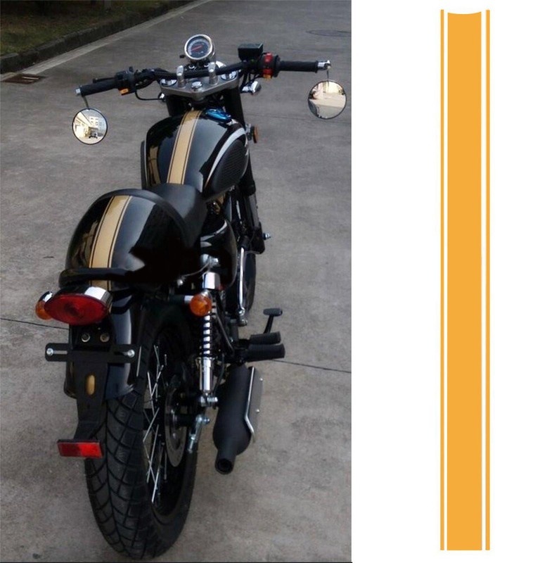 Specification: Model:476792 Material: Vinyl Color: Red, Gold, Silver, Black(please leave message, or we will send by Random) Size:50x4.5cm (LxW) Features: - Self adhesive stickers, adhere to any clean, dry, smooth surface. - Long lasting, flexble and durable. - High temperature & water Proof - Fashion and decoration, unique and attractive. - Can be applied on This can be used anywhere on a fairing cowl,