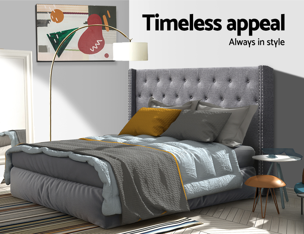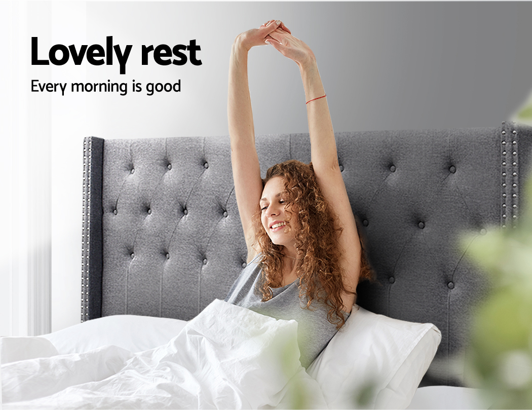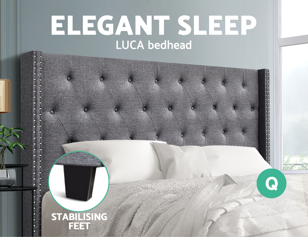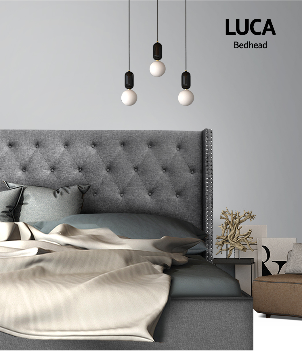 At first sight, you will be impressed how lovely this stunning bedhead literally looks. Upholstered in premium faux linen fabric, this elegant Artiss Luca Winged Bedhead features an art deco inspired tufted design that stands for timeless chic. Especially with its winged sides embellished with metallic studs that truly create a unique charisma for this ensemble. Inside, it is richly padded with high-density foam to lend a comfortable and plush feel when relaxing on it. A trait that you will surely appreciate when you rest on it to read, surf or watch a movie on your device. Plus, the bedhead is designed to seamlessly blend with your modern décor without creating any fuss. Built to be freestanding with anti-scratch tapered legs, our sturdy and elegant winged bedhead is definitely an outstanding addition to your bed frame.