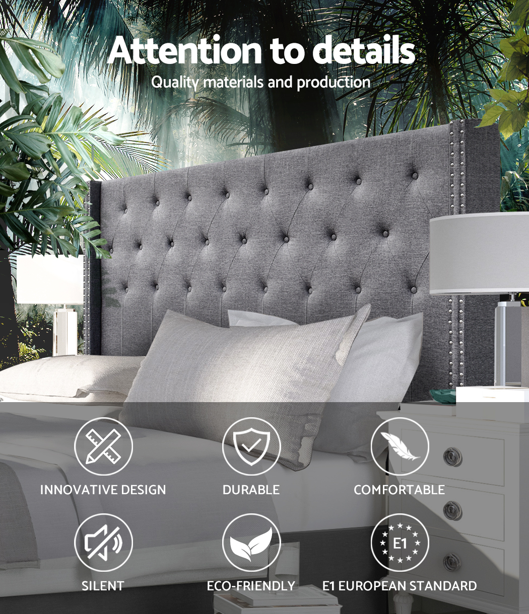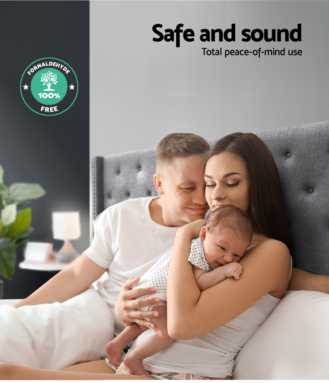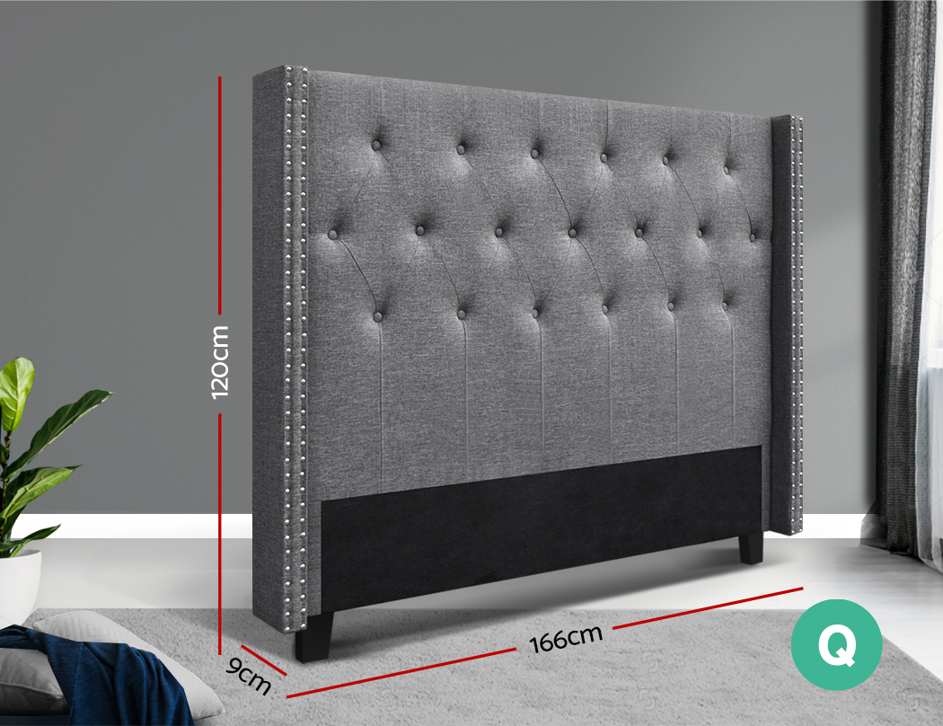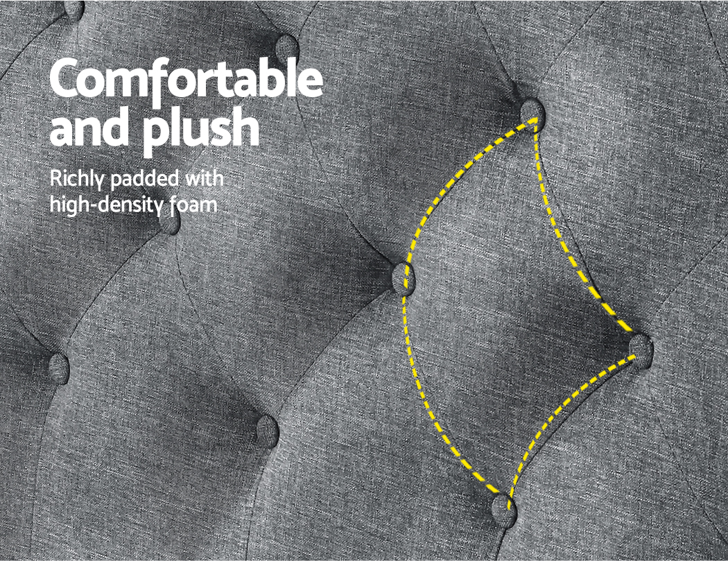 At first sight, you will be impressed how lovely this stunning bedhead literally looks. Upholstered in premium faux linen fabric, this elegant Artiss Luca Winged Bedhead features an art deco inspired tufted design that stands for timeless chic. Especially with its winged sides embellished with metallic studs that truly create a unique charisma for this ensemble. Inside, it is richly padded with high-density foam to lend a comfortable and plush feel when relaxing on it. A trait that you will surely appreciate when you rest on it to read, surf or watch a movie on your device. Plus, the bedhead is designed to seamlessly blend with your modern décor without creating any fuss. Built to be freestanding with anti-scratch tapered legs, our sturdy and elegant winged bedhead is definitely an outstanding addition to your bed frame.