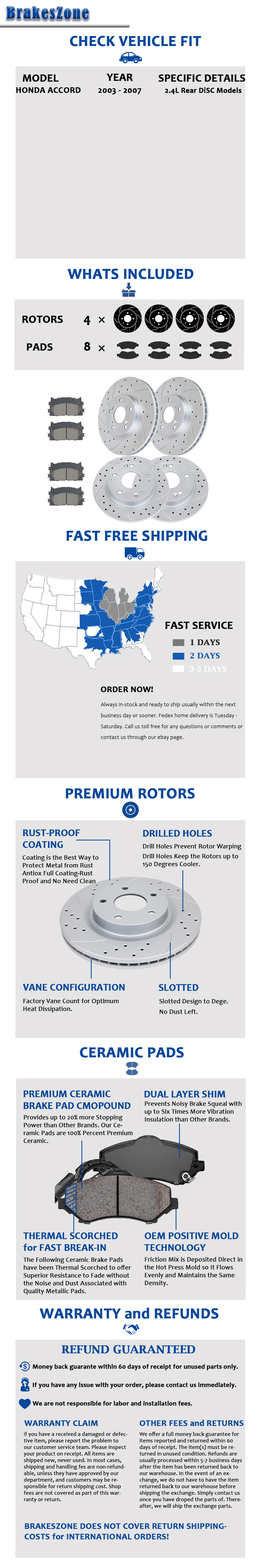 Front Rear Brake Rotors Pads fit for Honda Accord 2.4L 2003-07 Slotted Drilled
