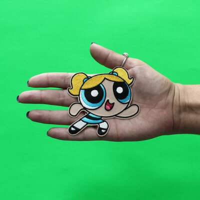 Add this Bubbles embroidered iron-on patch to your growing Powerpuff Girls collection.