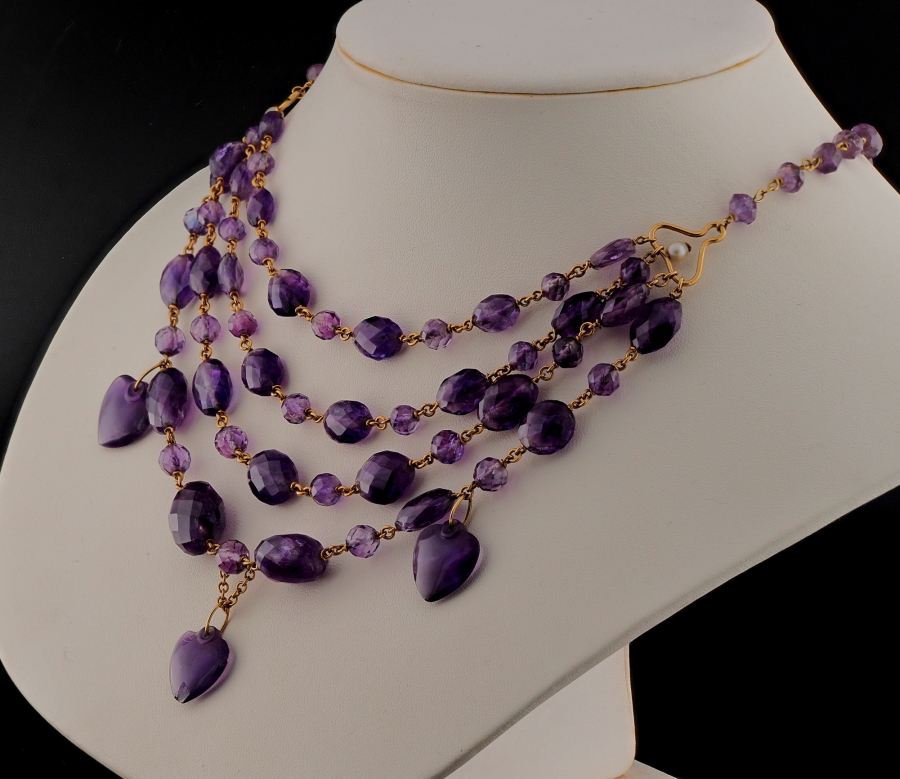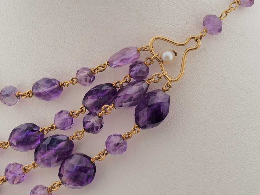Victorian Multi Strand Natural Amethyst 18 KT Necklace 1890 ca | | | | | |