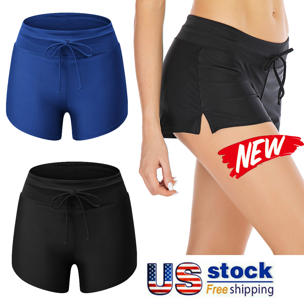 Ladies Bikini Bottom Front Drawstring Stretch Swim Shorts Summer Beach Swimwear