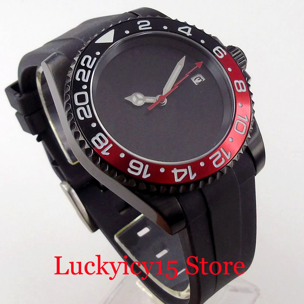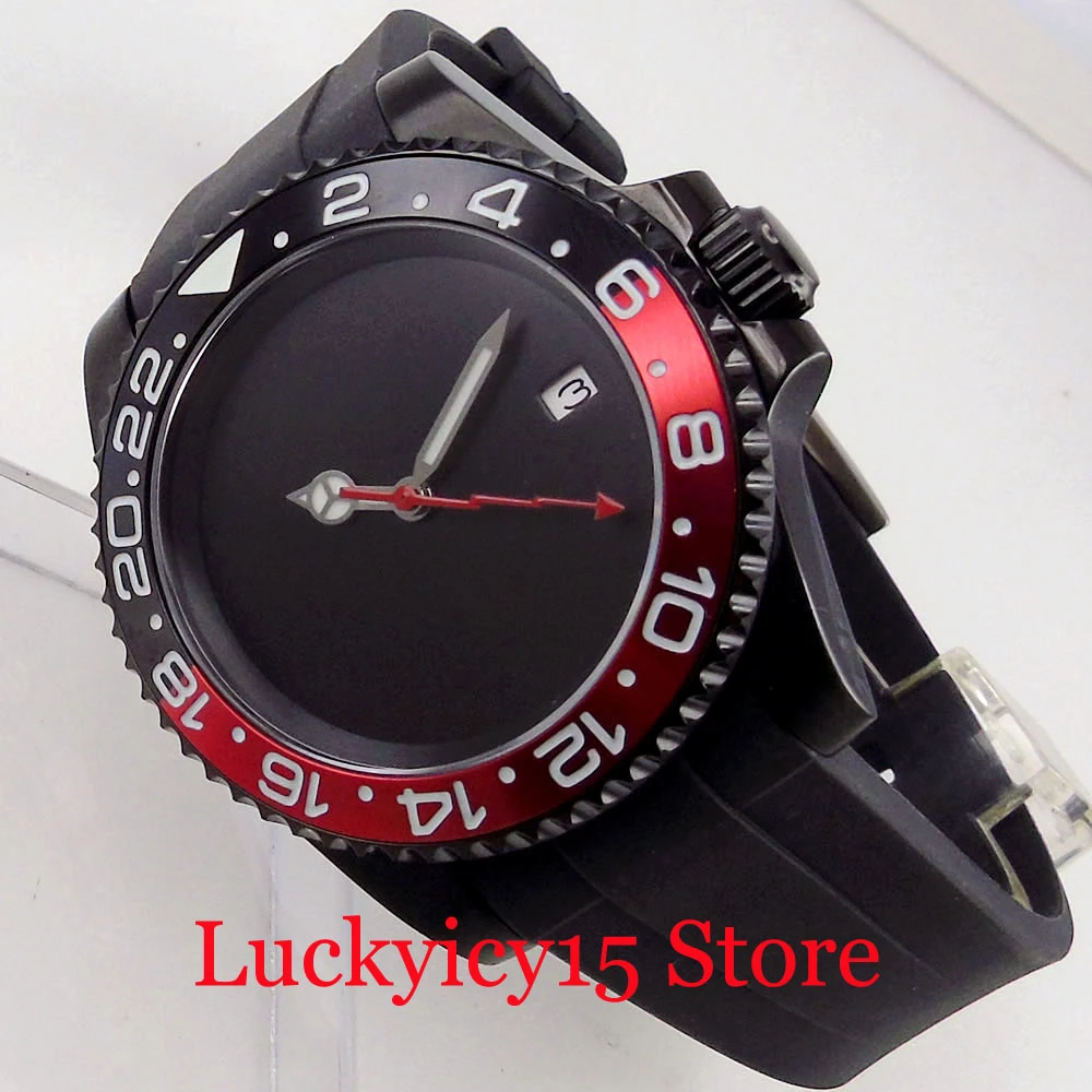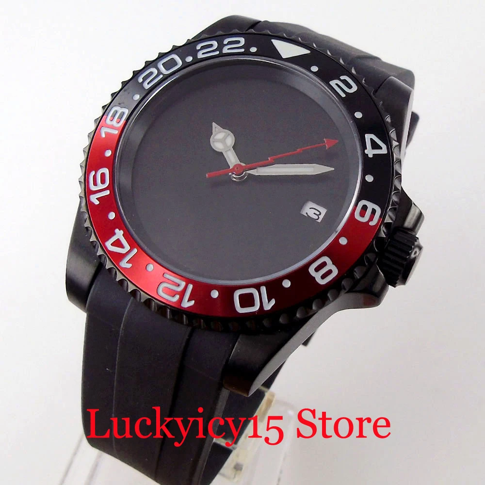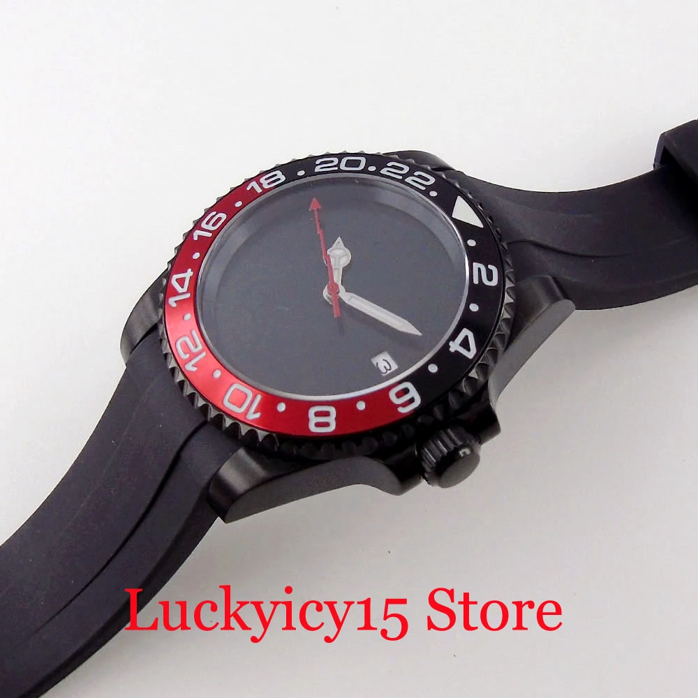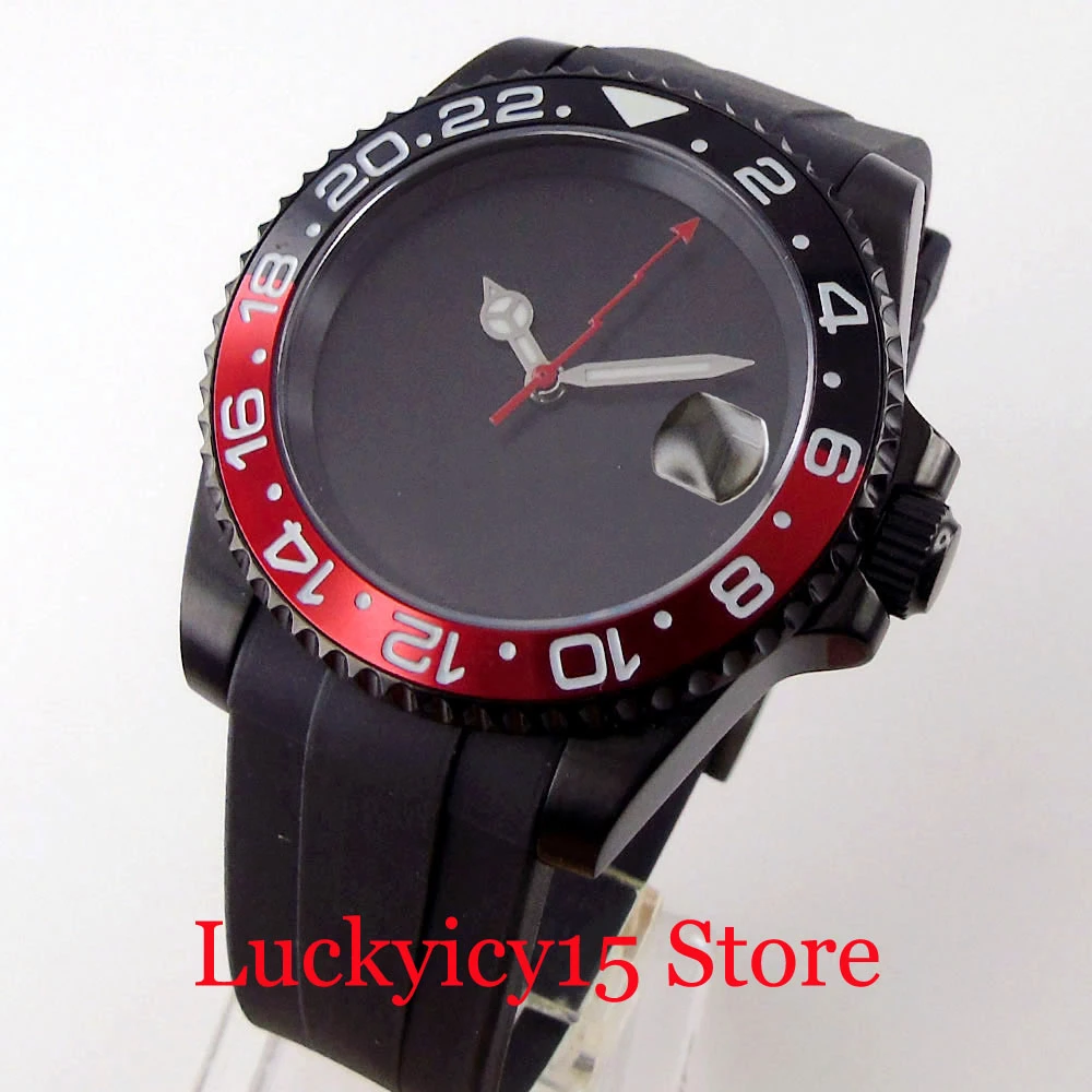 Case Meterial: black pvd plated case. black ceramic bezel ;black red alloy insert