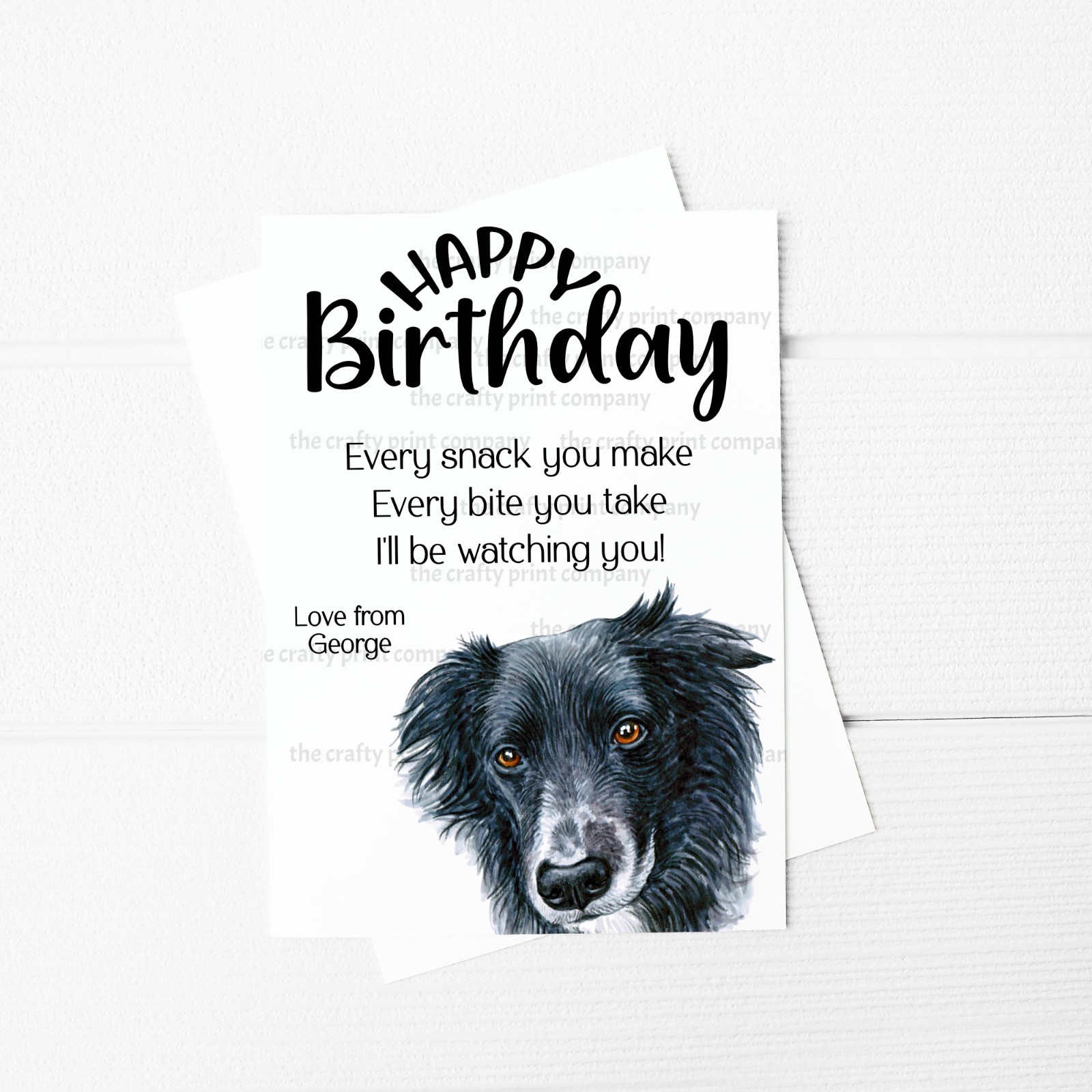 Every snack you make, Every bite you take, I'll be watching you collie personalised A5 Greeting Card