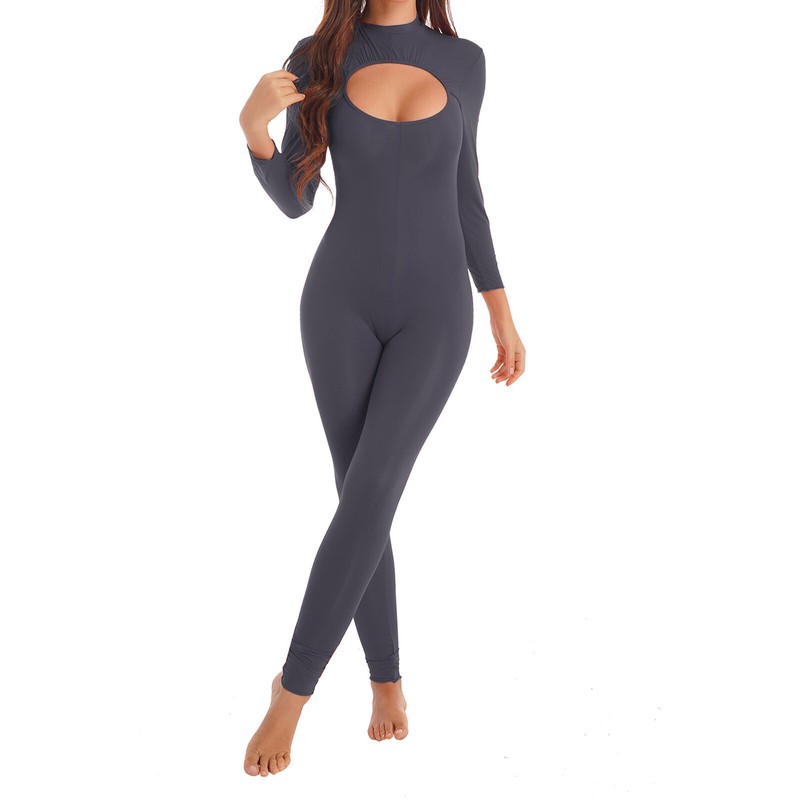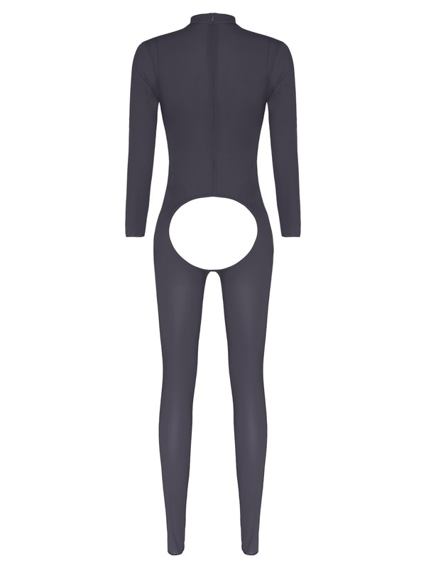 Womens Cutout Long Sleeve Mock Neck Skinny Jumpsuit Keyhole Open Butt Bodysuit.