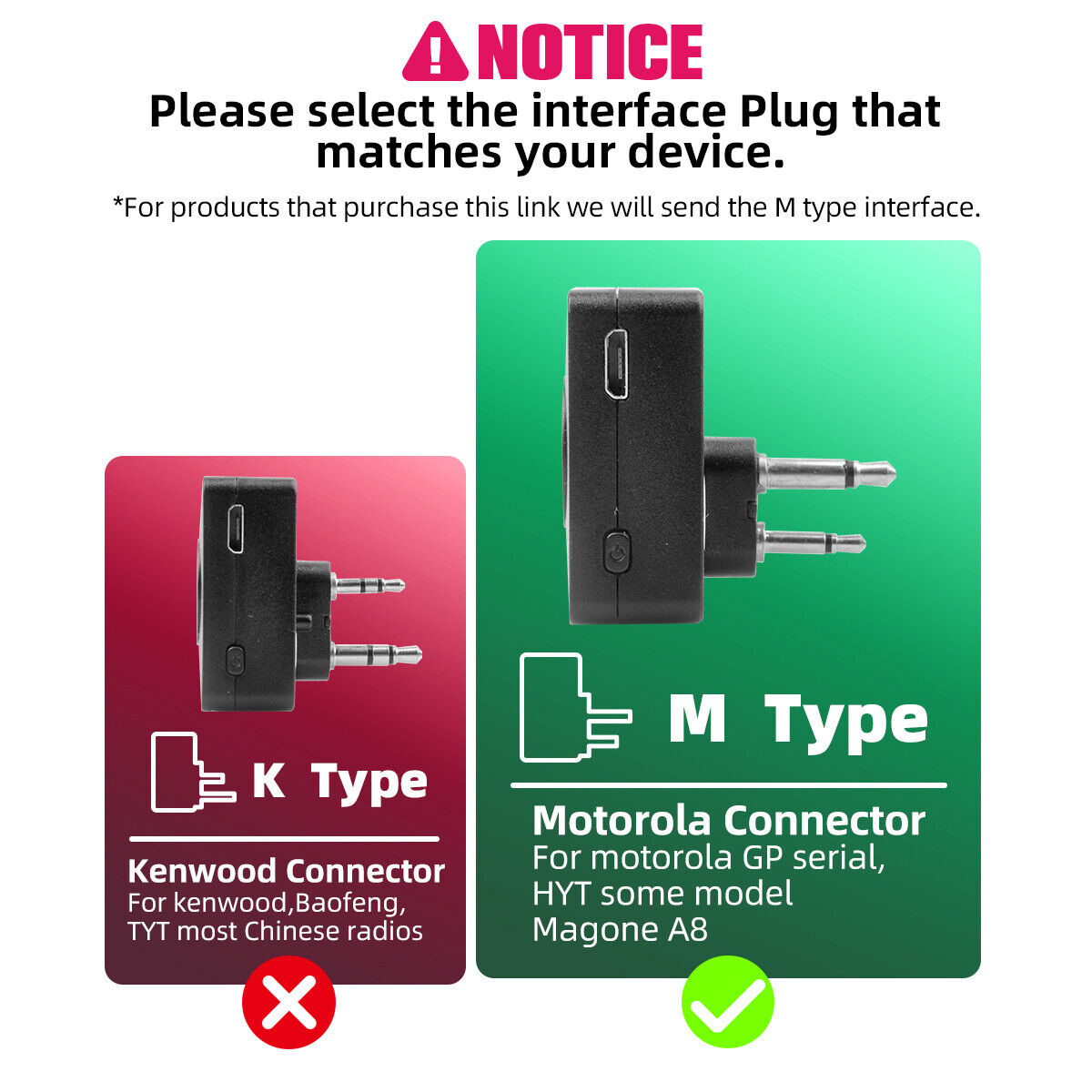 Connector: M Standard fit for those model Motorola ABELL TAIT etc with M plug