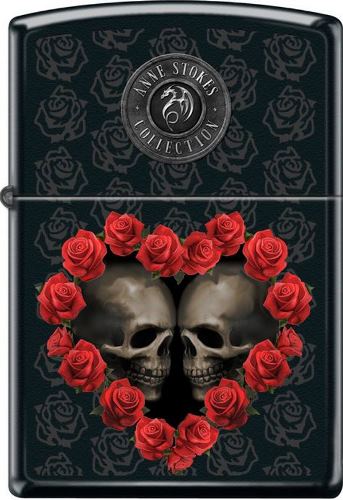 Zippo Anne Stokes Skull, Red Heart Roses, Gothic, Fantasy