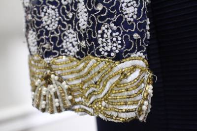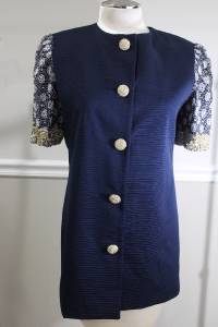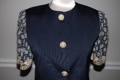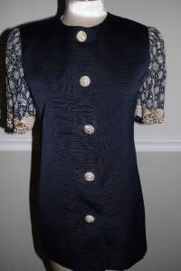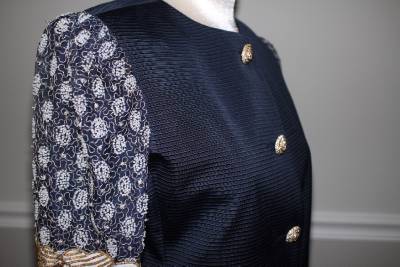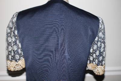STUNNING JACKET, RHINESTONES BUTTONS DOWN FRONT, SLEEVES ARE ADORN WITH LOVELY JEWEL SMALL PEARLS. FULLY LINED |