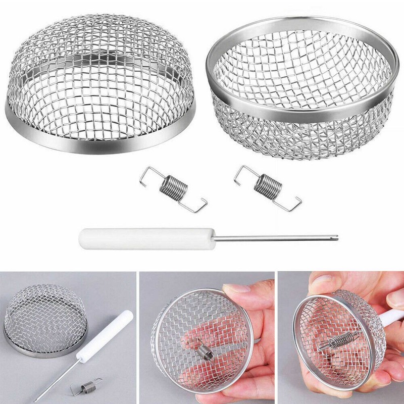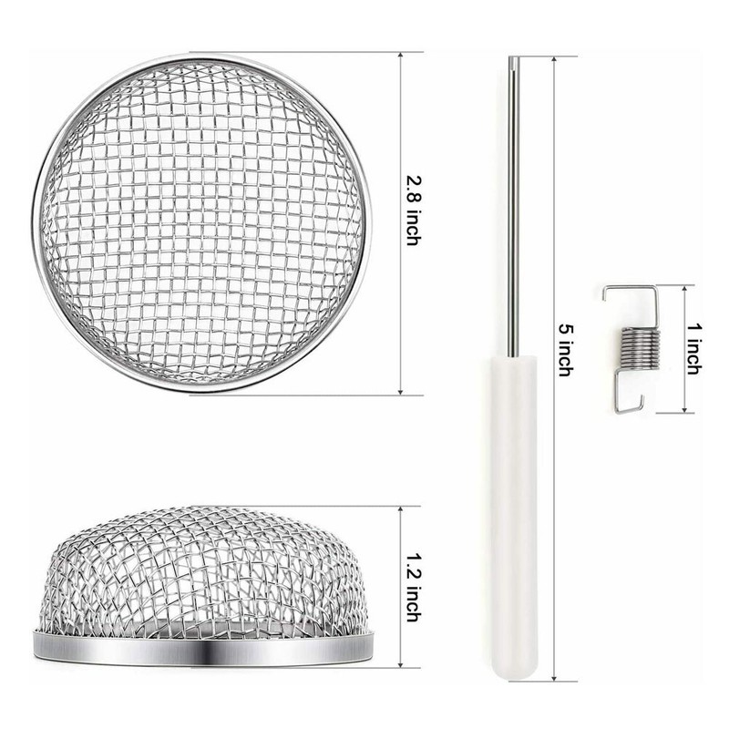 Specifications: 1. the hook end will be attached to the screen, the spring is hooked on three wires. 2.Thread the crossbar spring end through the vent cover using the provided tool.. Make sure the spring grabs hold of the vent crossbars. 3.The spring will grab the vent cover from inside and hold the screen in place. Size: 2.8" diameter x 1.2" height-0.12 each mesh grid.
