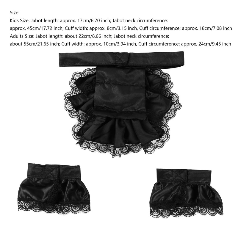 Kids Size: Jabot length: approx. 17cm/6.7 inches; Jabot neck circumference: approx. 50cm/20 inches; Cuff width: approx. 8cm/3.1 inches, Cuff circumference: approx. 20cm/7.8 inches