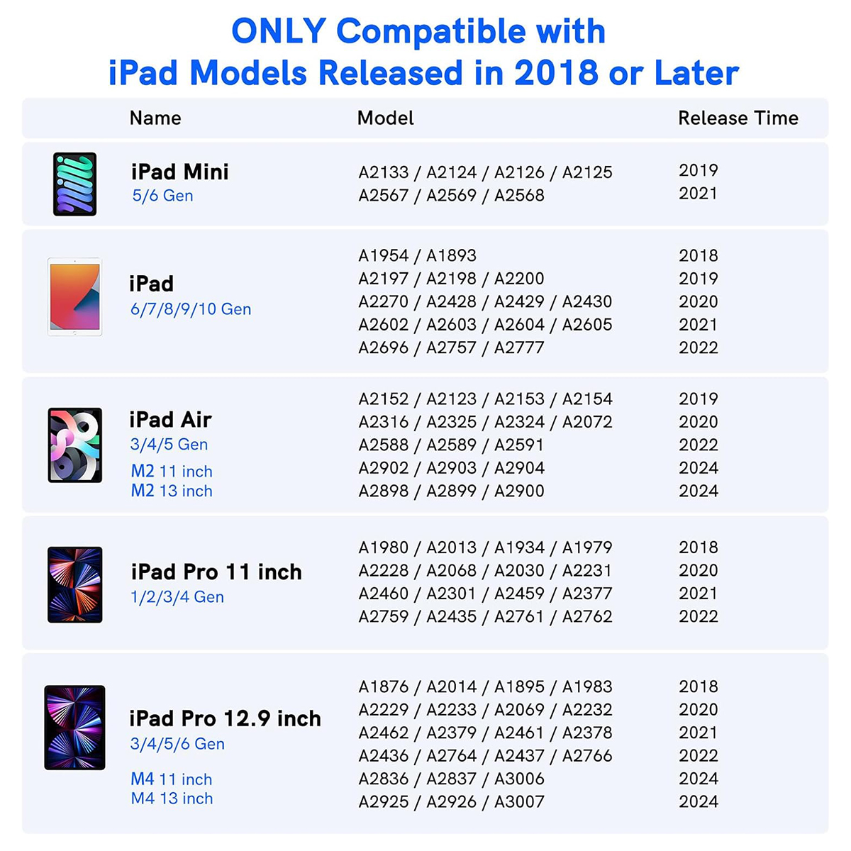 Compatible devices: only for iPad devices released after 2018, not for any iPhone or Android devices!