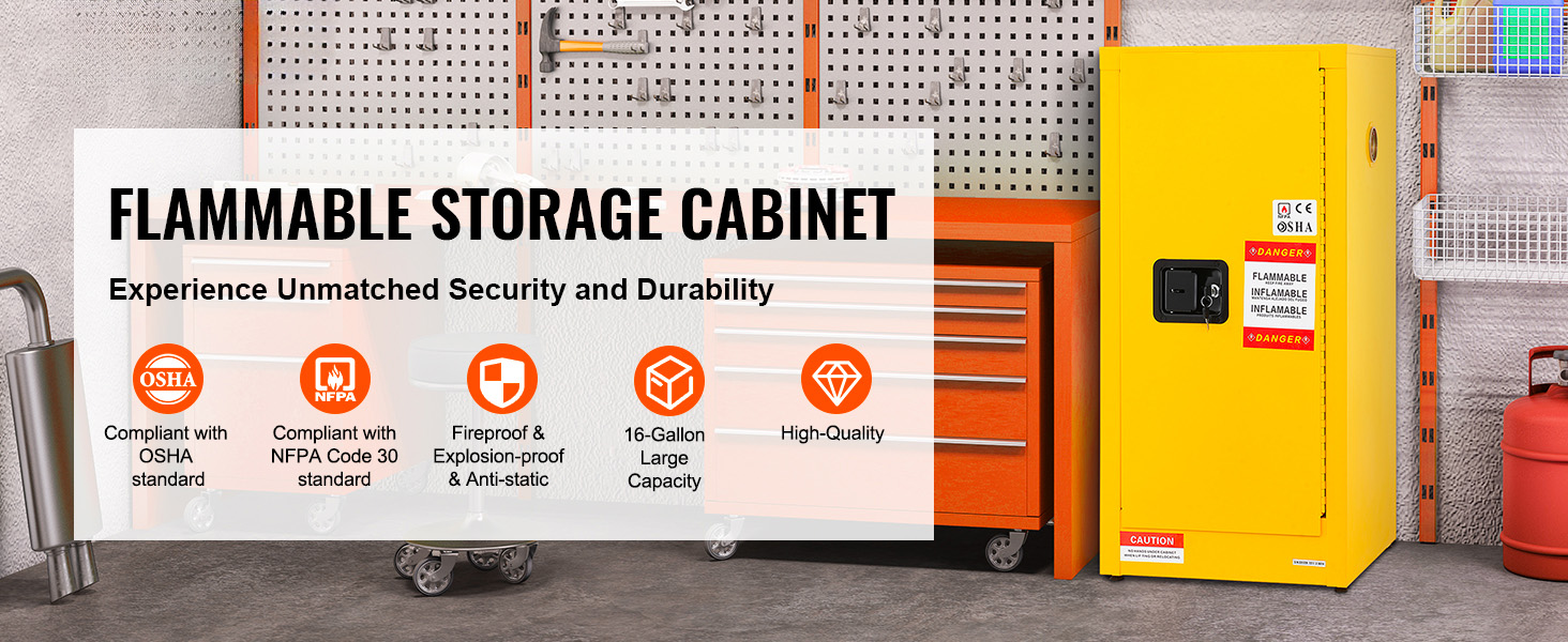 The whole body is made of 0.08 in/2 mm cold-rolled steel. A double-wall steel design makes it more robust, and the air space between is filled with fireproof material. Therefore, it's an excellent choice to store the flammable liquid.