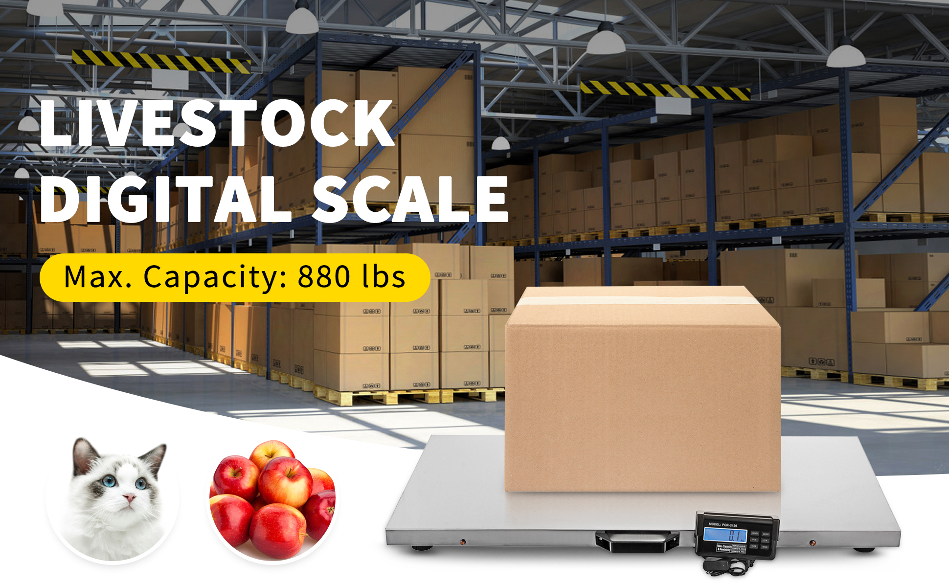 This is a multi-use and heavy-duty digital scale to weigh small and large items easily by adding this digital vet scale to your office or kennel. Its 40.6x20.9"(103 x 53cm) stainless steel platform is large enough for some Llamas and Alpacas yet accurate enough for smaller breeds of dogs. Livestock scales also can be utilized in a variety of places, including postal, shipping, warehouse,etc.