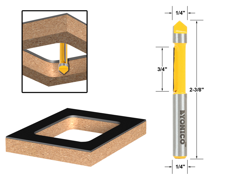 The Yonico 14174q Panel Pilot Router Bit allows you to first pierce through a veneer or laminate and then cut out the rest of the inner portion of the project such as cutting out the sink hole of a counter top. The bit's tip is steel and the blade is carbide. Saves a lot of time wasted changing out bits. Just bore a hole and trim the rest.