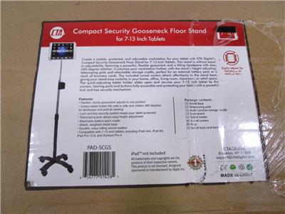 This listing is for one New CTA Digital Compact Security Gooseneck Floor Stand 7"-13" Tablets. The box shows some wear and tear, please refer to pictures.
