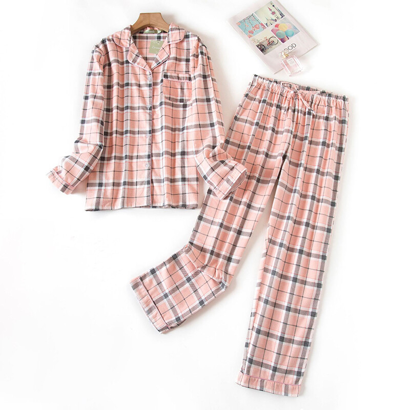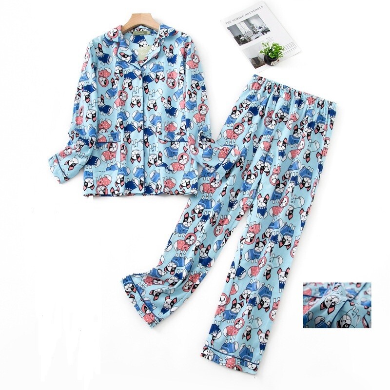 Women Pajamas Set 100% Cotton Flannel Printed Button 2Pcs Loungewear Nightwear