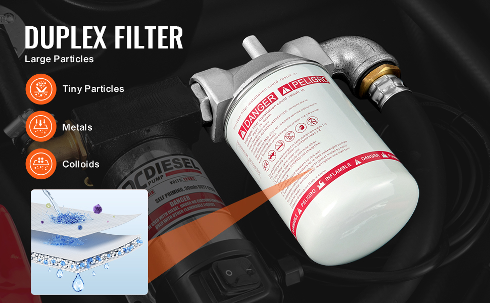 Upgraded Filter Design: Compared with other products, our fuel transfer tank is equipped with a duplex filter to provide purer diesel. The front-end filter of the inner tank can separate large particles of impurities, and the premium outer filter is designed to filtrate small impurities such as metal, colloids, tiny particles, etc.