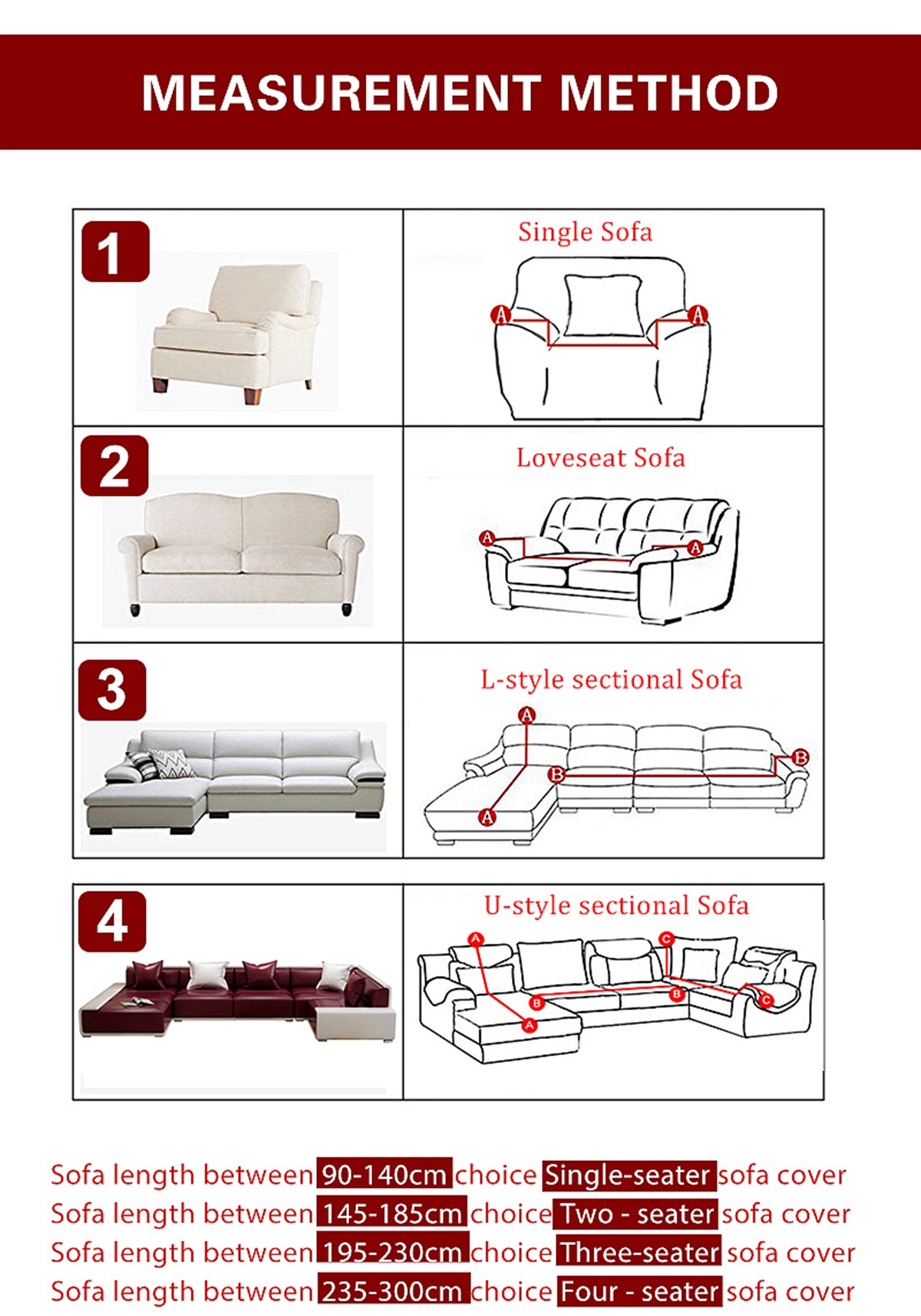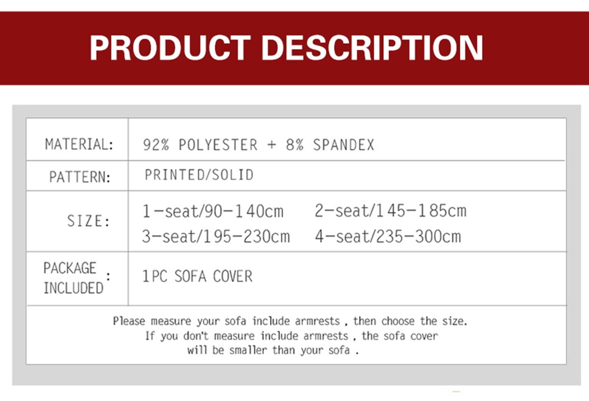 -if your sofa's length with 230cm-300cm / 90.55" - 118.11" please choose size "4 seater