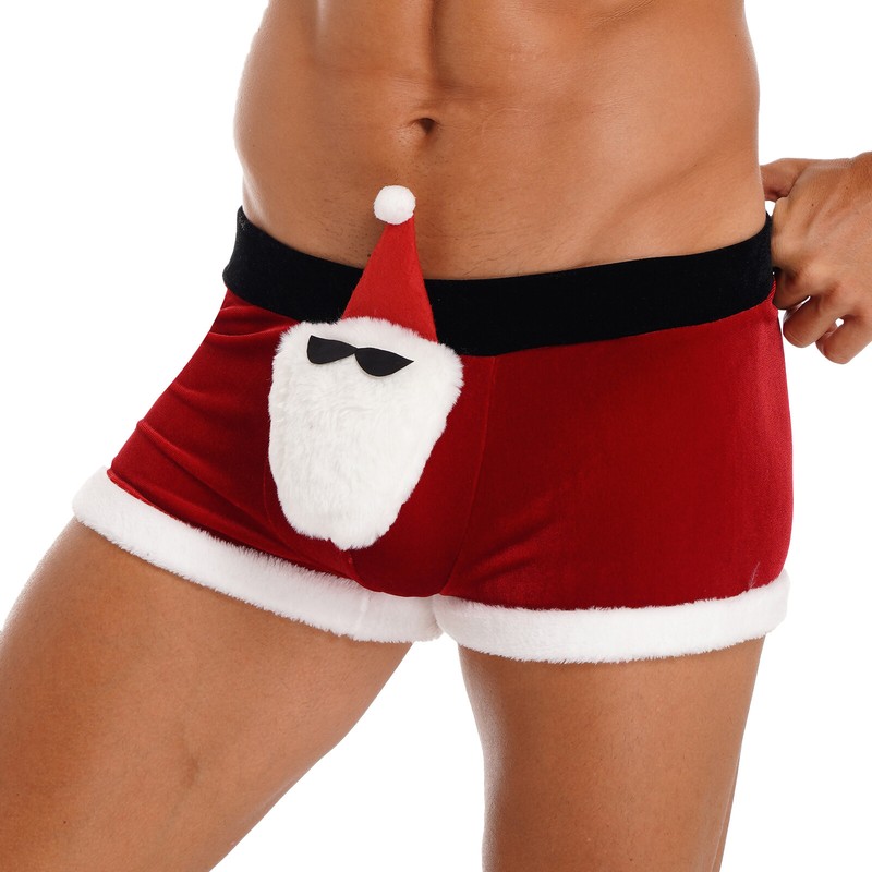 Santa Claus doll in sunglasses and hat is attached to the bulge pouch.