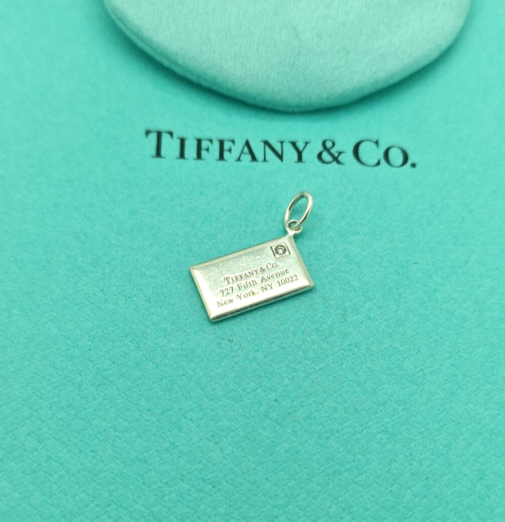 Tiffany & Co. Silver Diamond Letter Envelope Fifth Ave New York Charm / Pendant