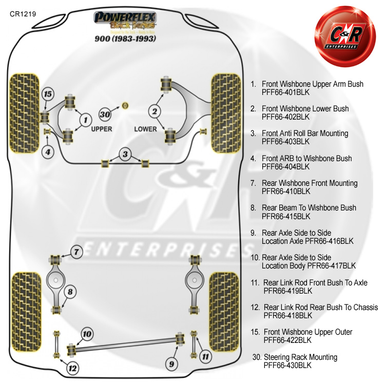 También vendemos todos los demás arbustos PowerFlex para este modelo tanto en Blue Fast Road como en esta serie PowerFlex Black Motorsport. Estos pueden incluir elementos como arbustos de espiga, arbustos de barra anti-rollo, arbustos de estante de dirección, protuberancias de suspensión, eje trasero, etc.