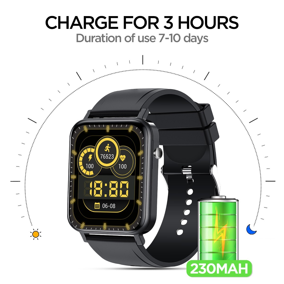 Features: 1.83inch display, Touch screen + botton, Sensor three axis gravity sensor, 230mAh battery capacity, Bluetooth 5.0, Heart rate sensor, System Support.