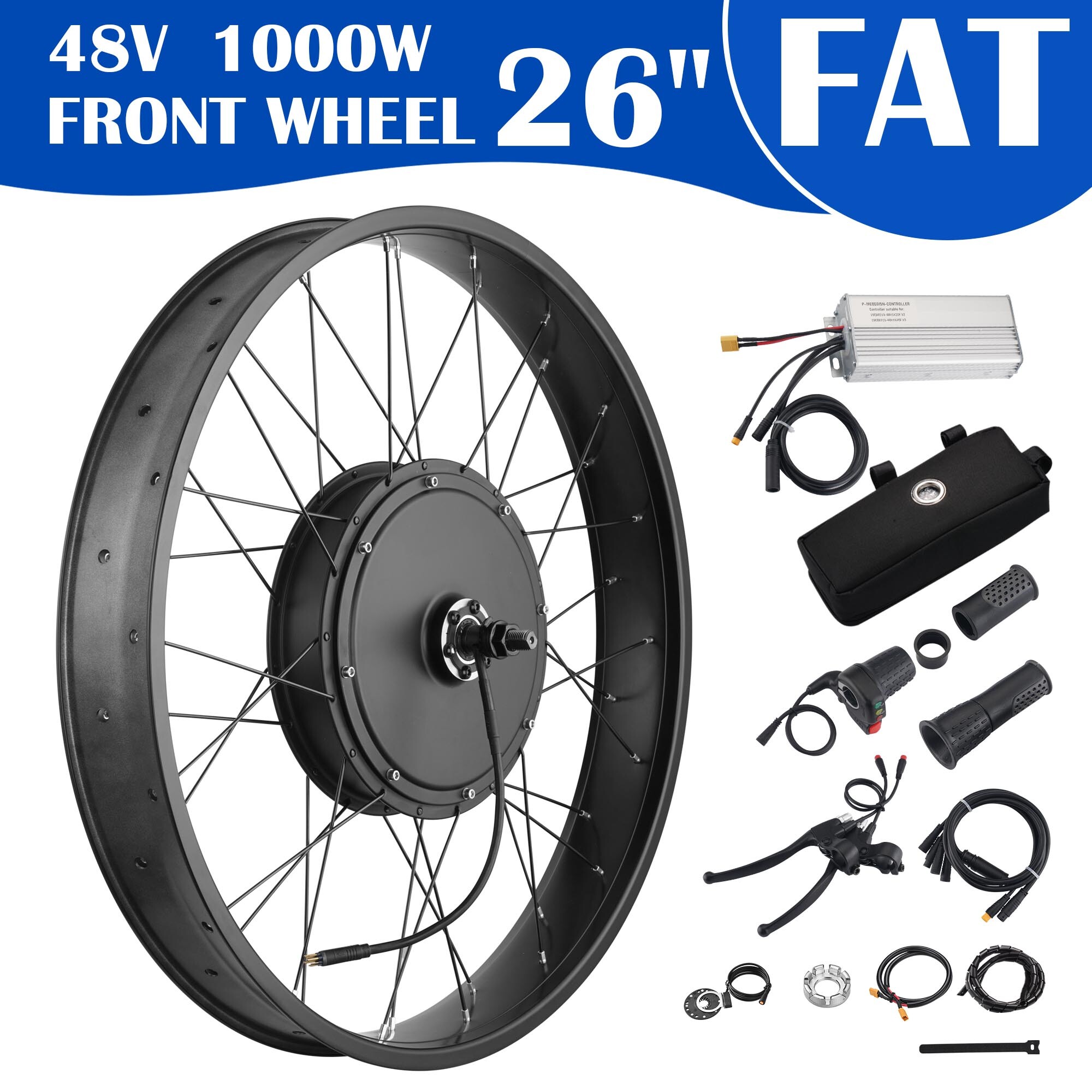 Yescom 26"x4" Fat Tire 48V Ebike Front Wheel Bicycle Conversion Kit 1000W