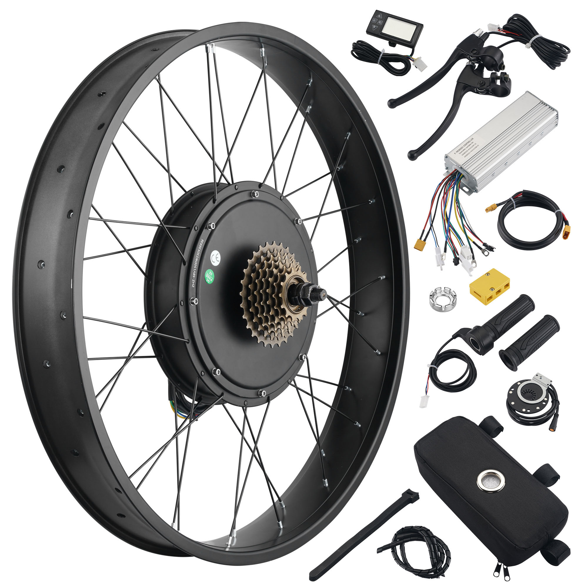 48V 1000W electric bike front wheel conversion motor kit features powerful brushless hub motor for converting your 26" bicycles to an electric bicycle with 45 KM/H max. speed. It provides efficiency and convenience and helps you fully enjoy the pleasure of riding.