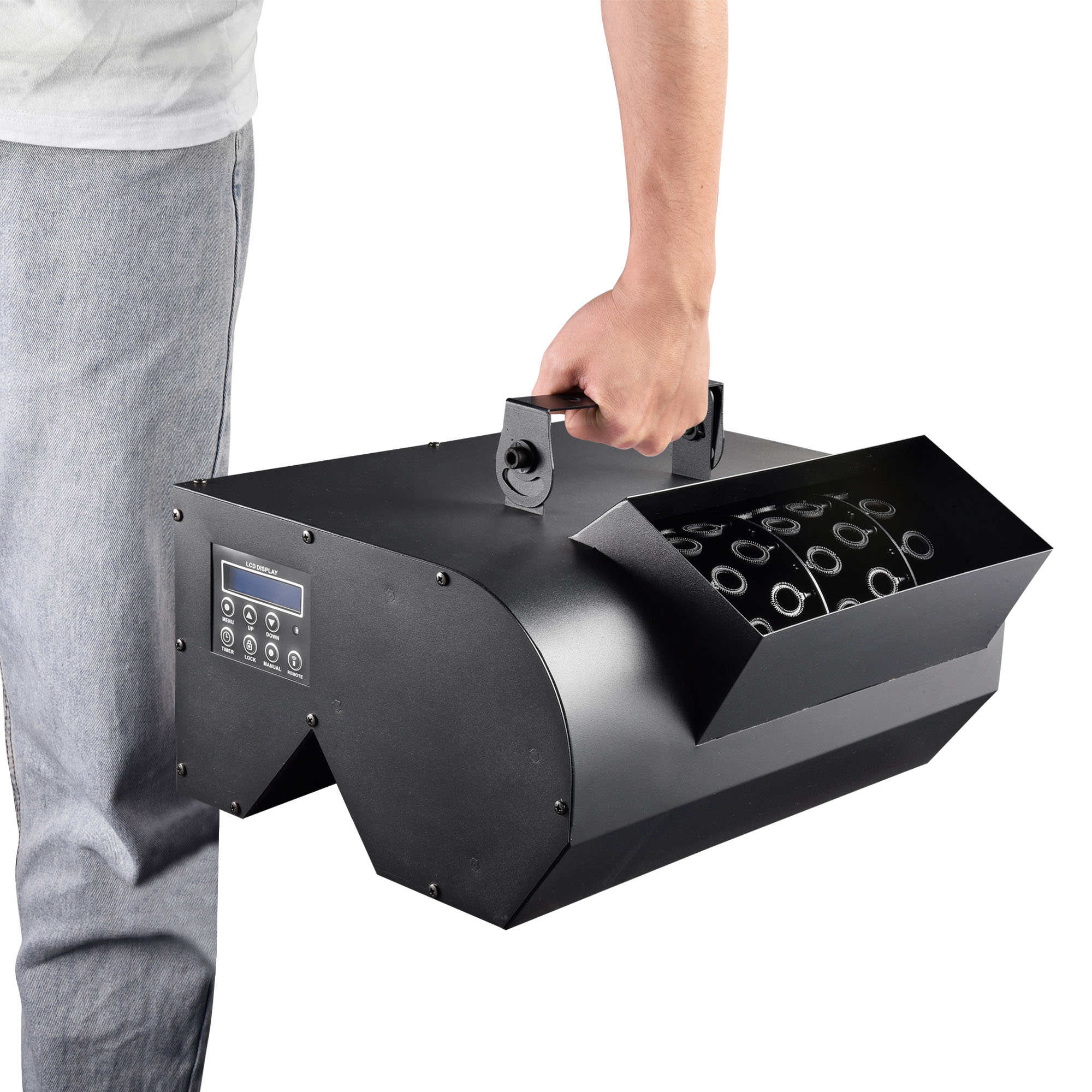 - Convenient Control - Comes with a convenient remote control with 49 1/4 ft sensing distance for adjusting colors and lighting modes, allowing you to choose between Auto, DMX, Slave and Flash, along with Sound or Music mode which automatically changes its lighting effects along with music sensed