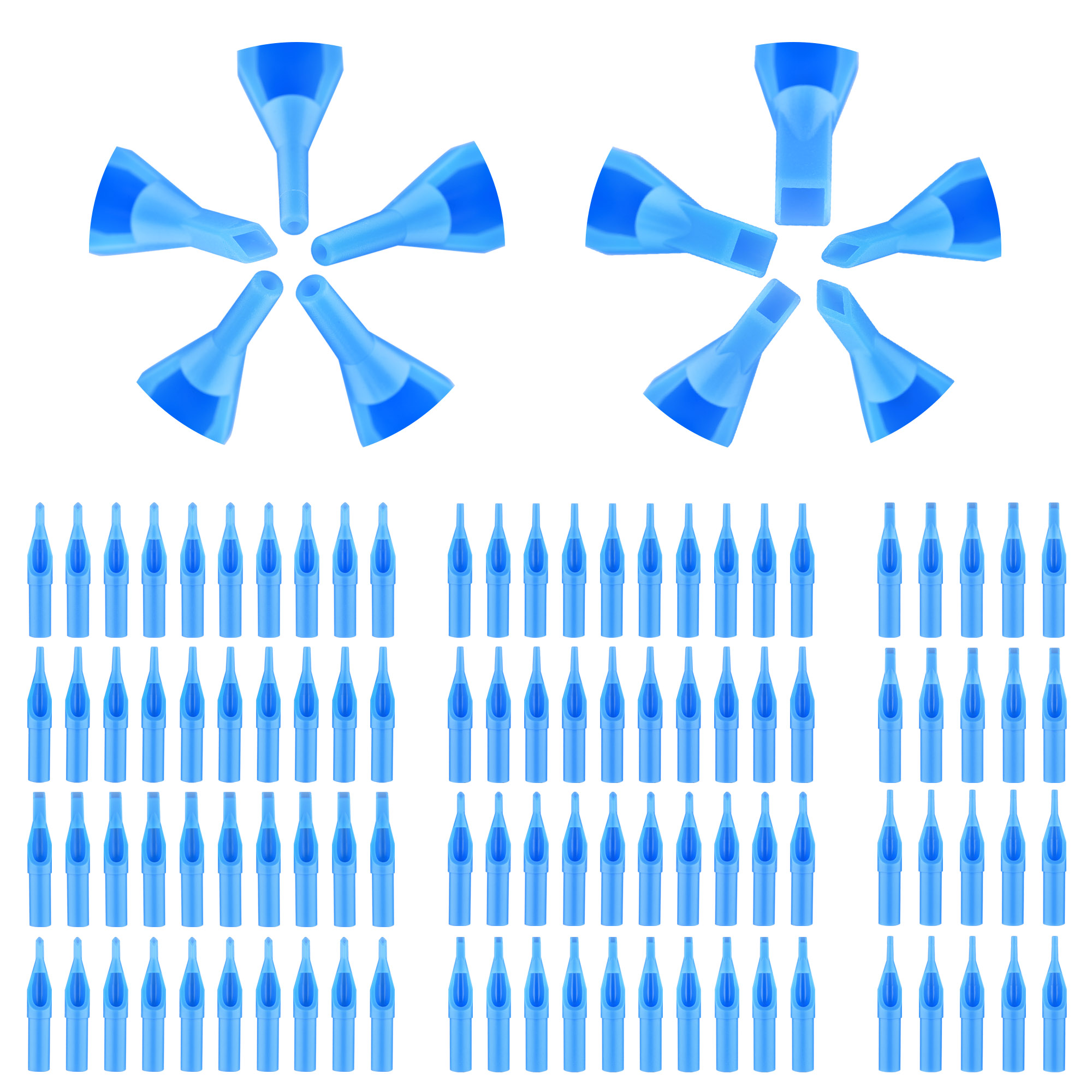 - 50 pieces made of 304 Stainless steel tattoo needles in different sizes for greatly outlining, shading and coloring.