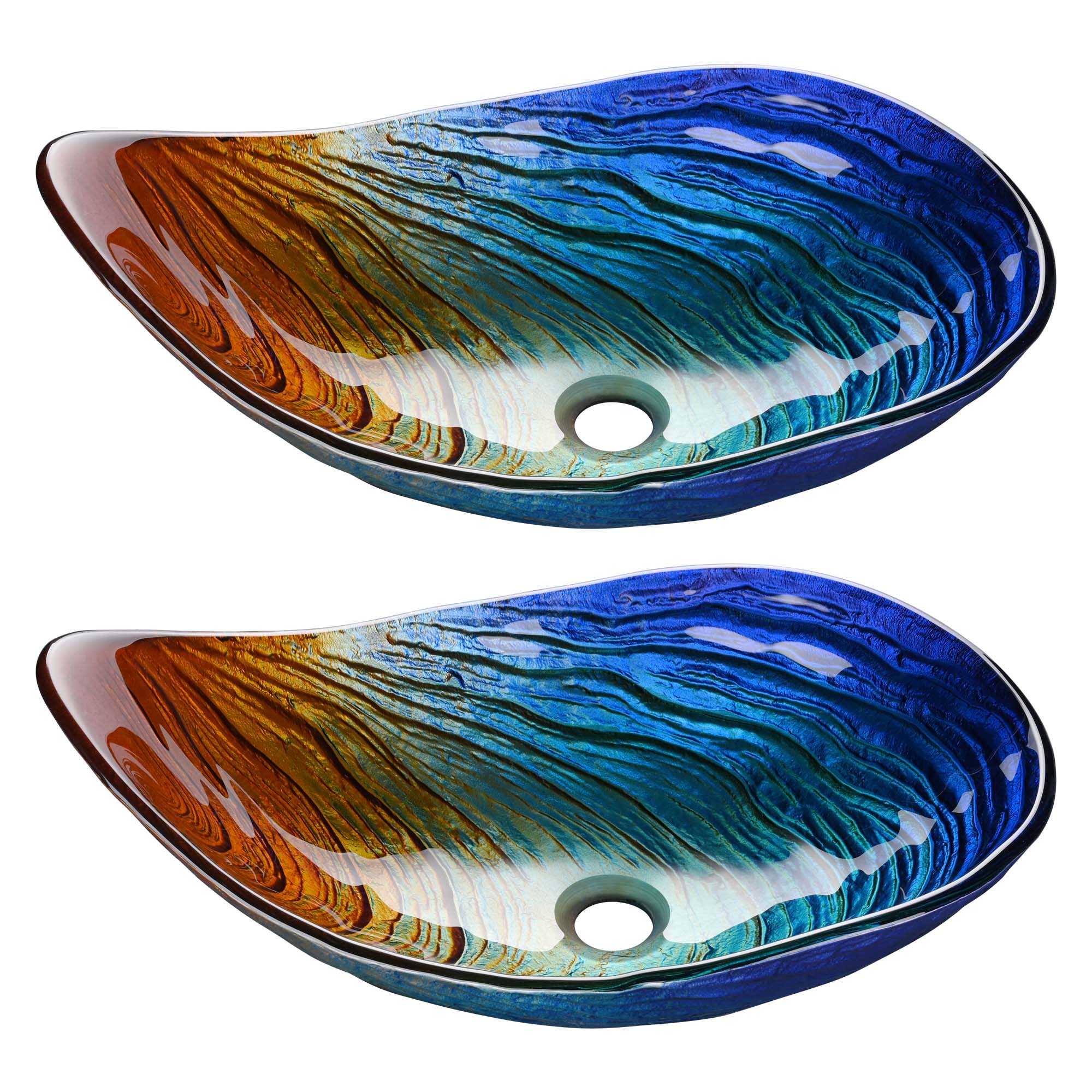 - High-End & Elegant Appearance - 2 Packs of 22 1/16" x 14 3/8" x 7 7/8" Aquaterior Countertop Bathroom Glass Sinks feature a unique waterdrop shape with shiny gradient colors, wave texture, and shiny quicksand effect, making it the perfect decorative yet functional piece to enhance the style and aesthetics of your bathroom