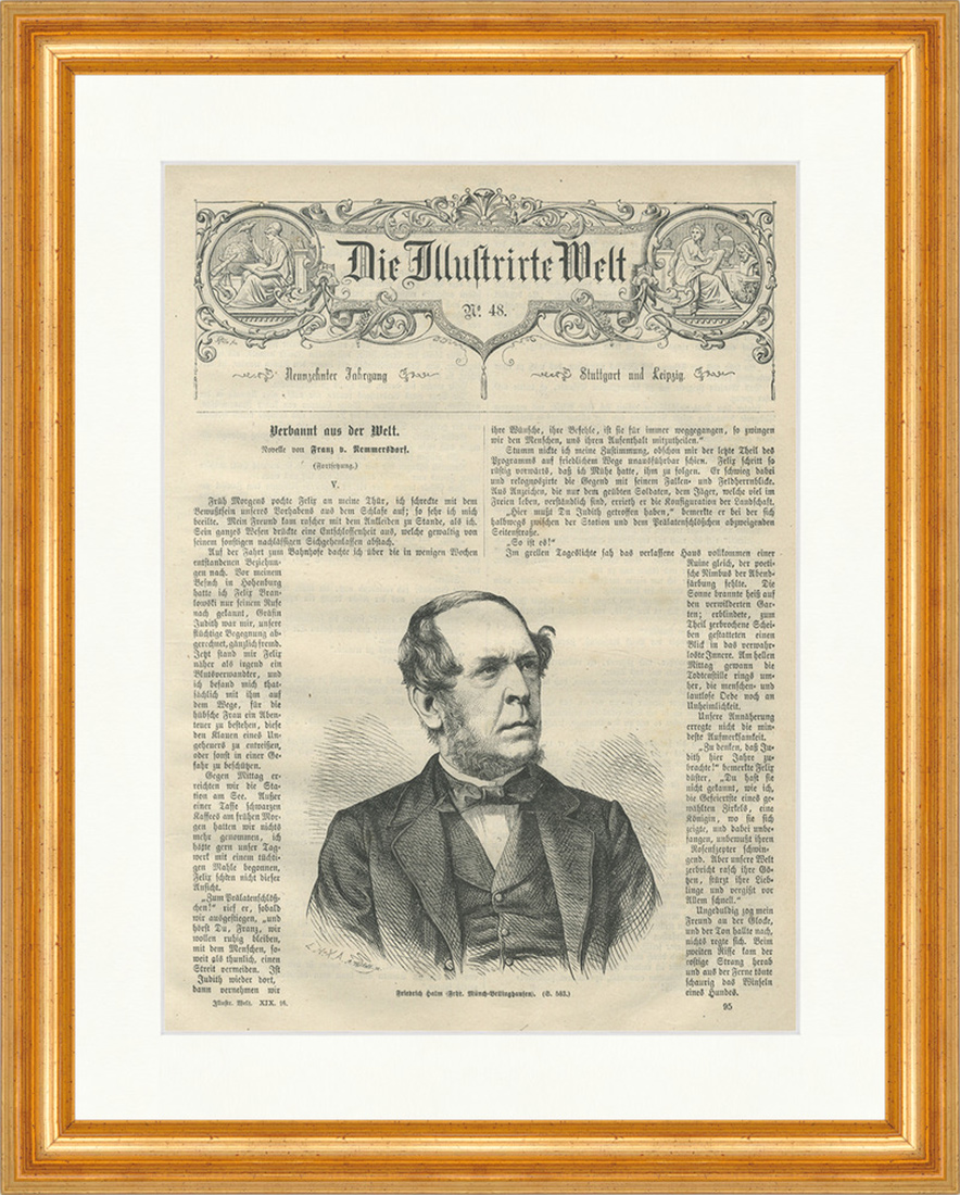 Dieser wertvolle Holzstich wird durch ein Schrägschnittpassepartout stilvoll präsentiert. Die Rückseite wird von einem Karton geschützt. Selbstverständlich sind das Passepartout und die Rückwand aus einem säurefreien Material.