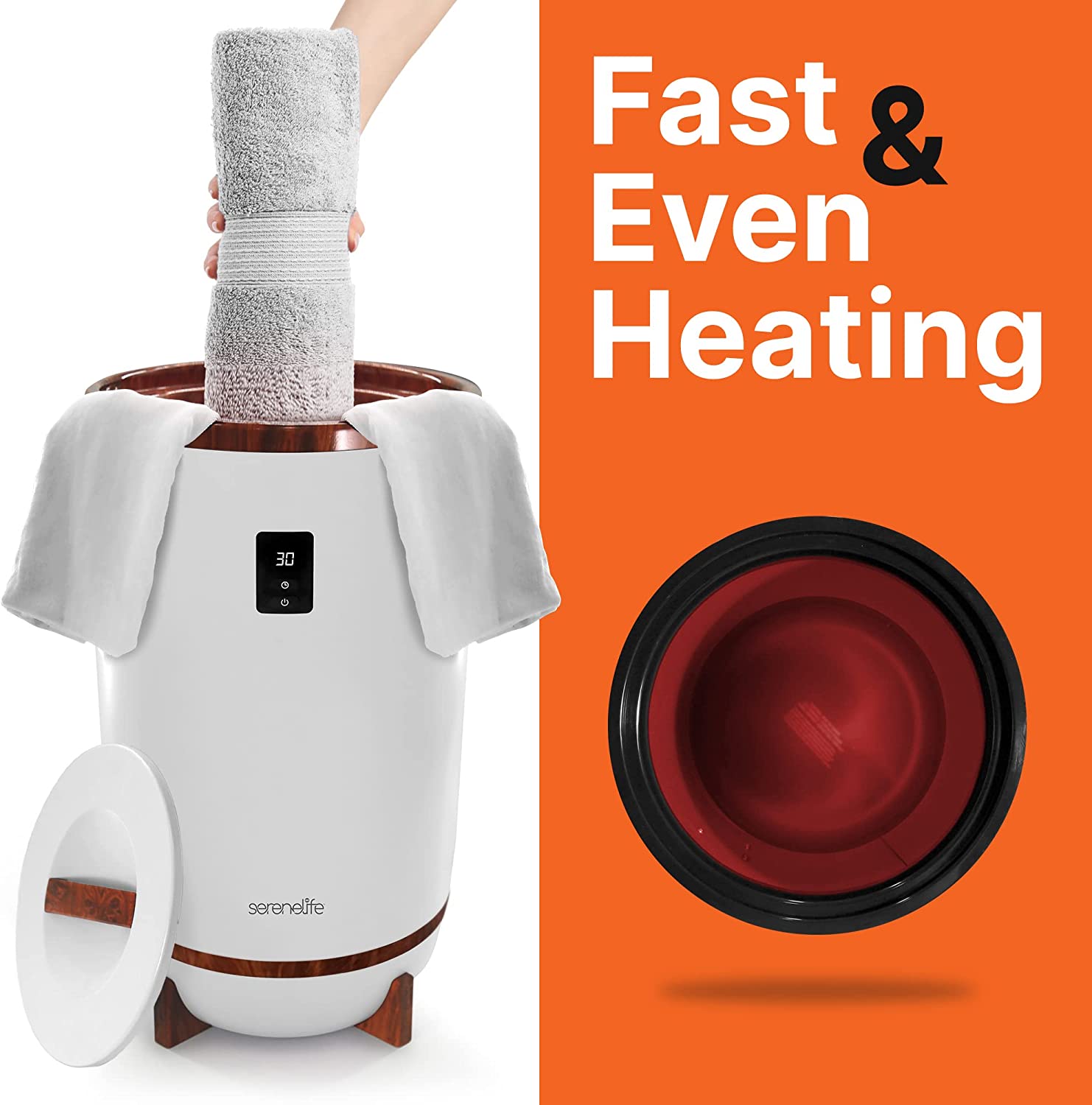 Single Touch Towel and Blanket Warmer with Fragrant Disc Holder and LED Ring Red, Perfect Size for Two Large Bath Towels, Automatically Shut off Feature