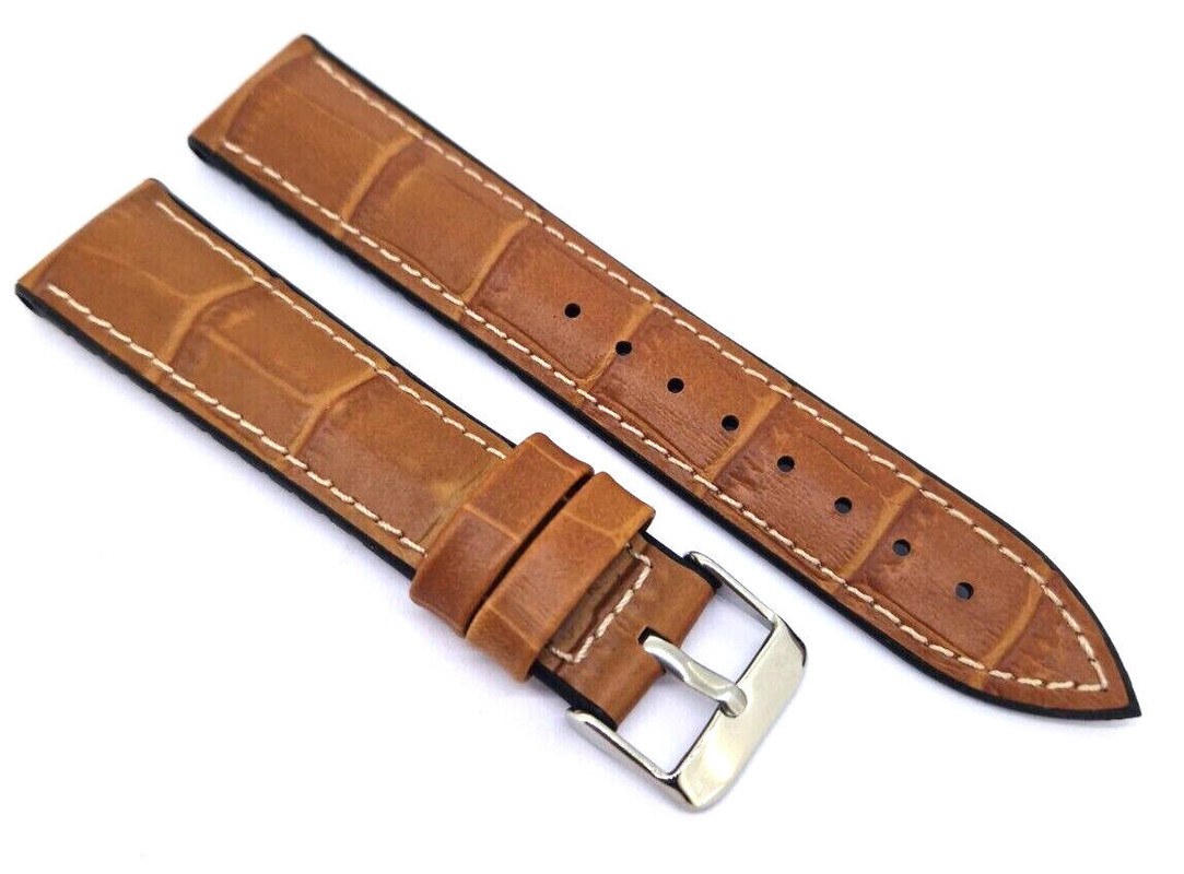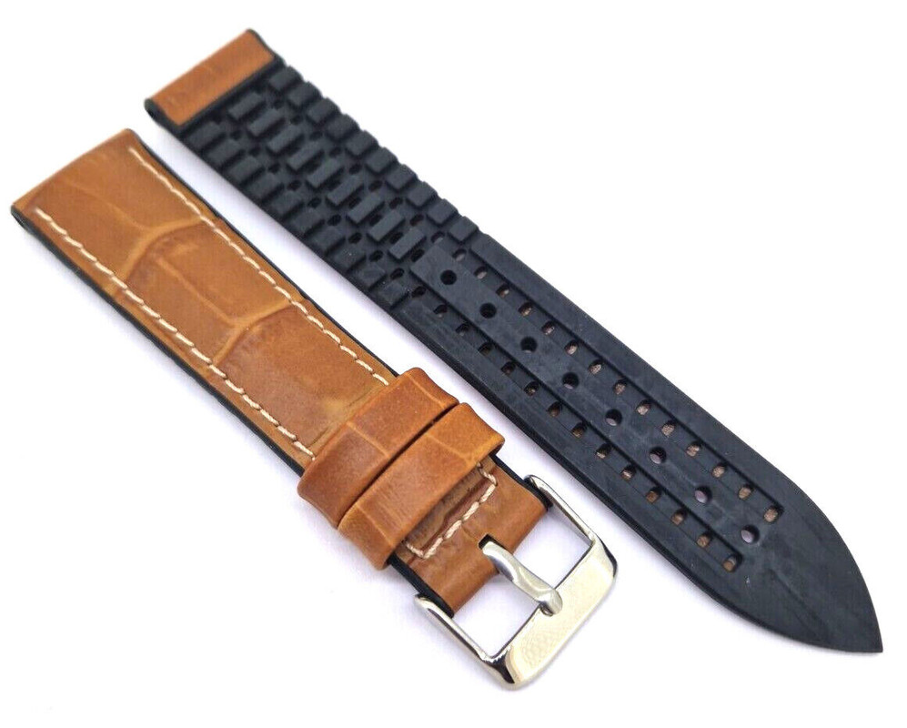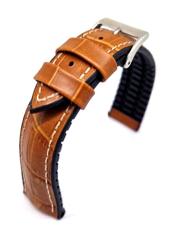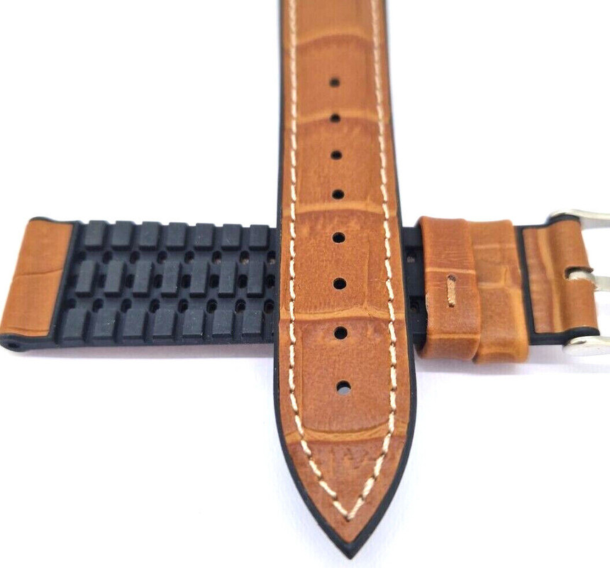 Uhrenarmband hellbraun wasserfest 20mm Kautschuk + Leder mit Kroko Prägung