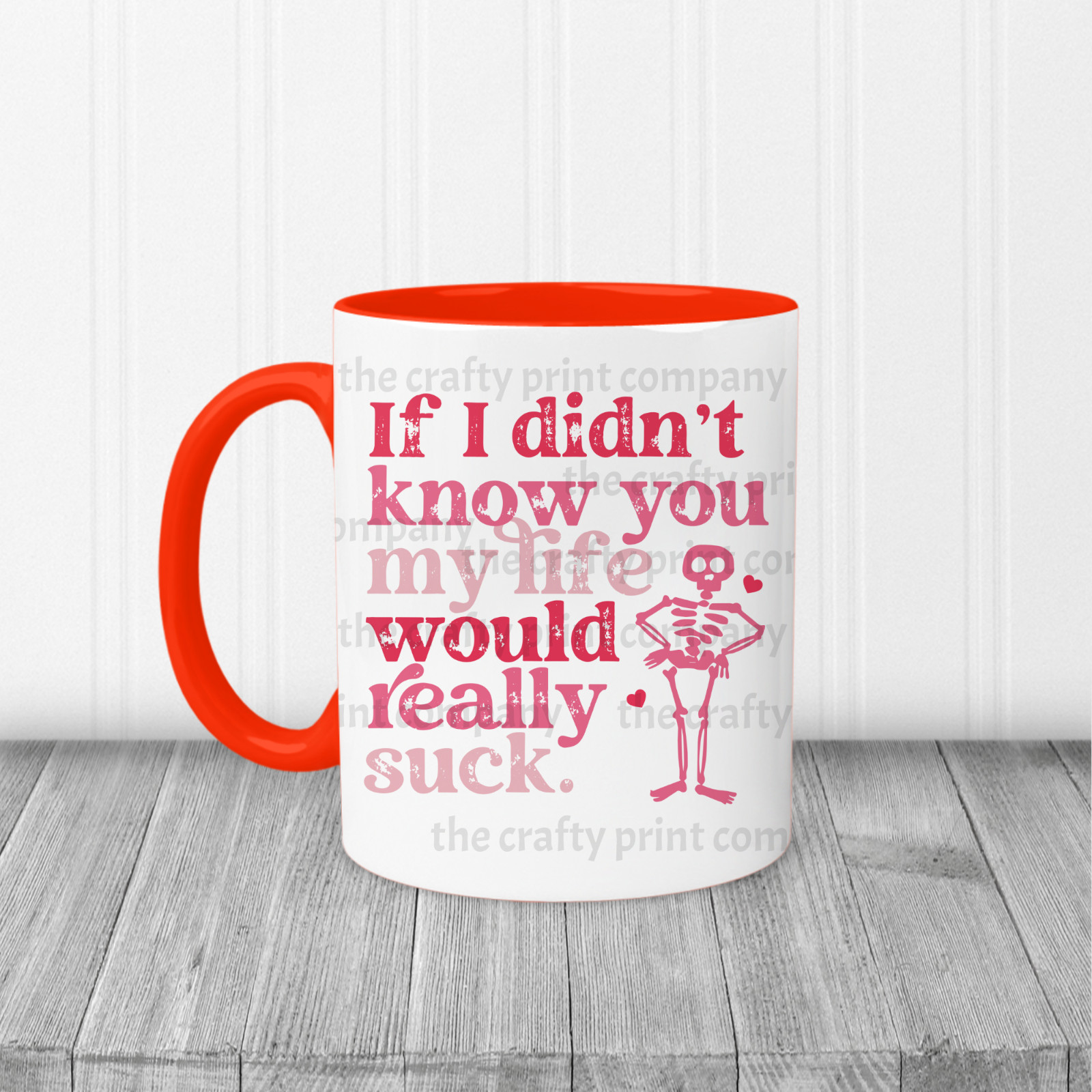 Black, Light blue, Red and Pink or you can choose just a plain white mug. 11oz